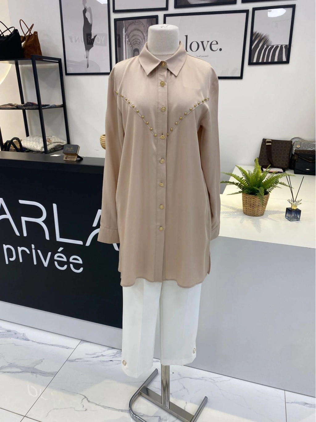 KOLLARI TAŞLI TENSEL GÖMLEK
