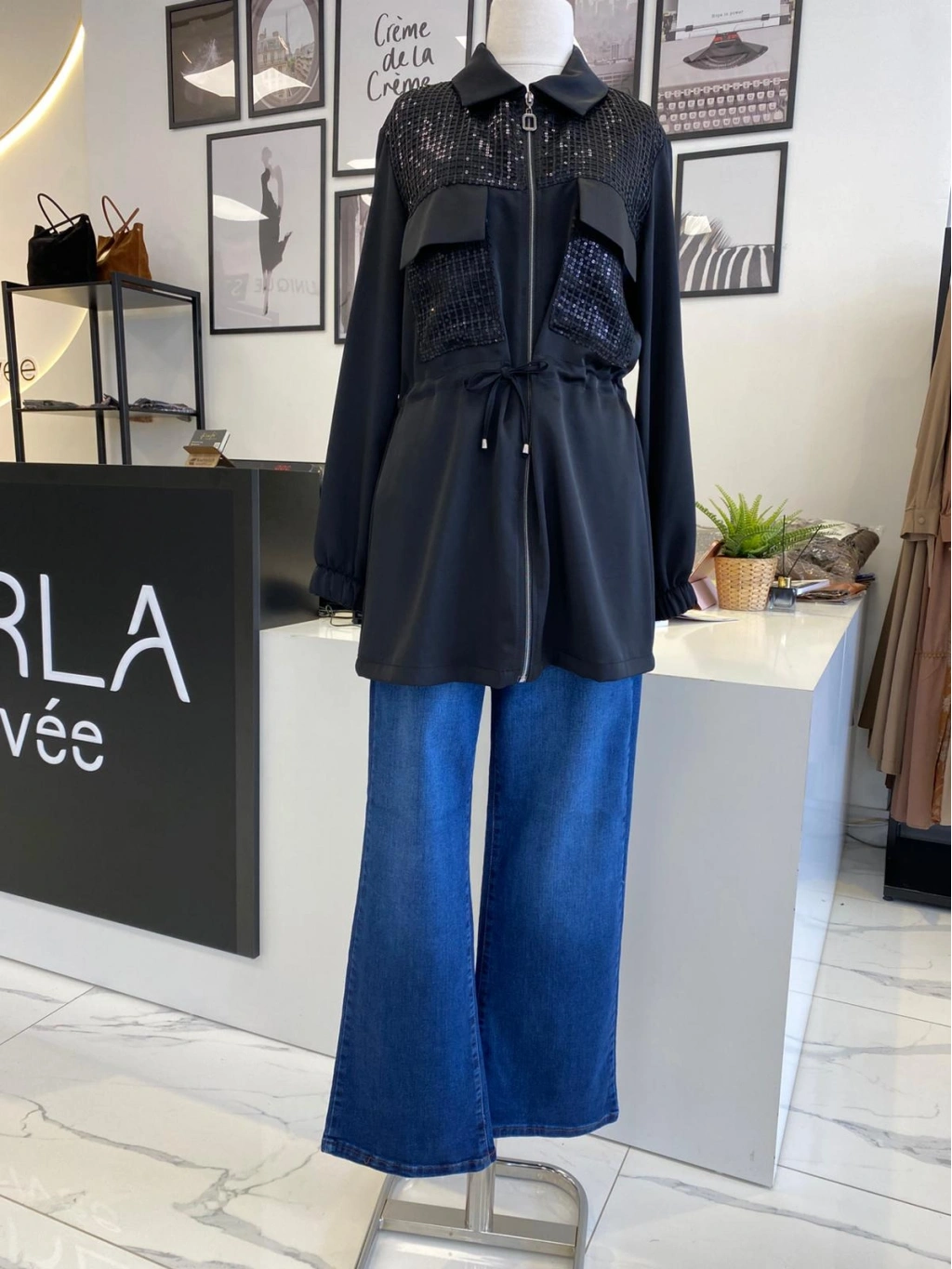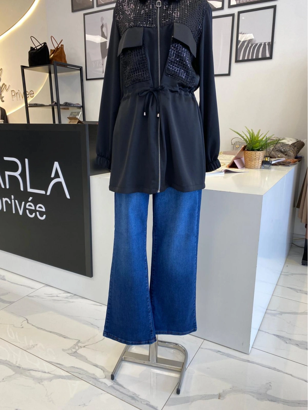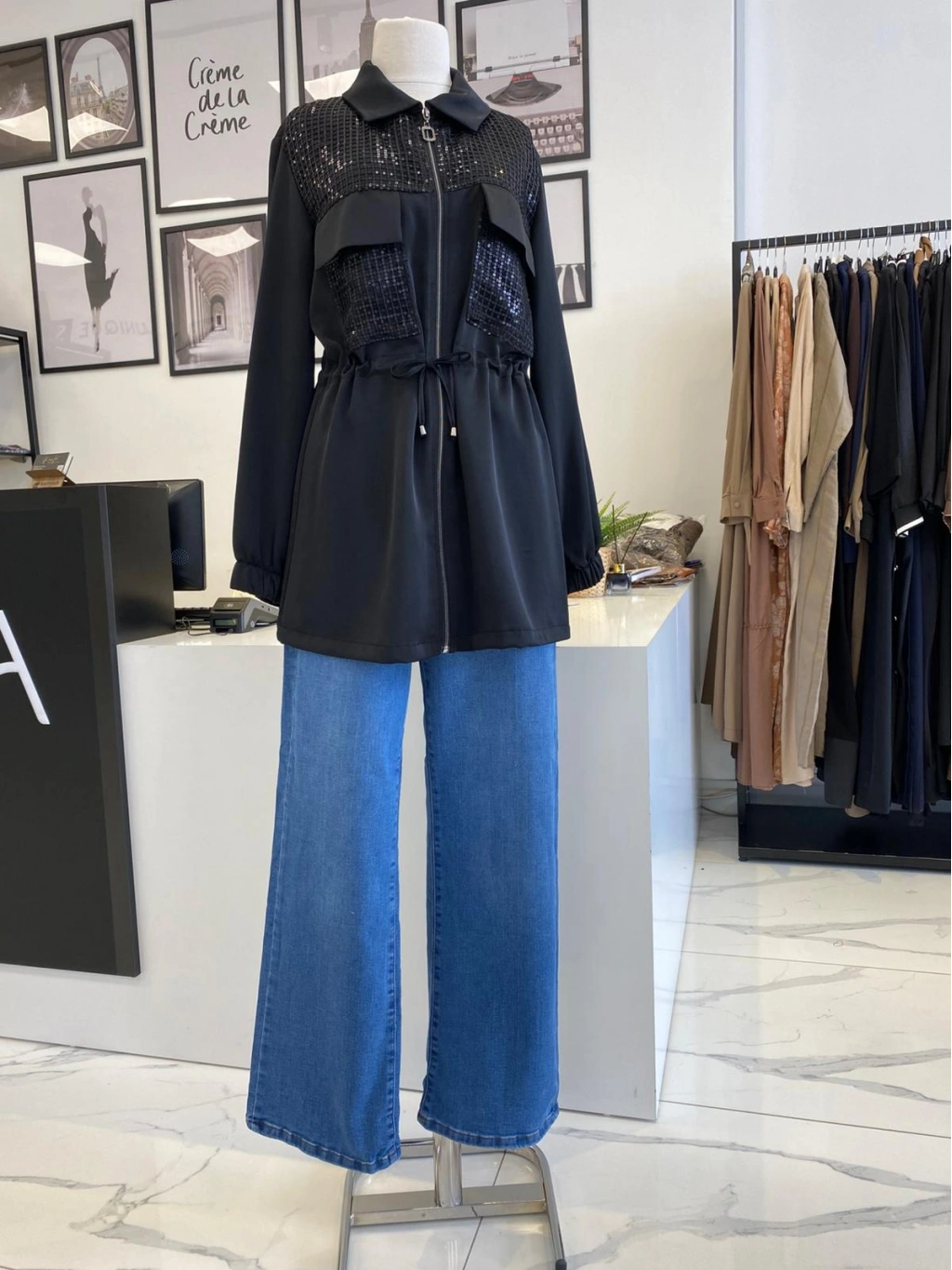 DENİM ÜZERİ TAŞLI DAR PAÇA PANTALON