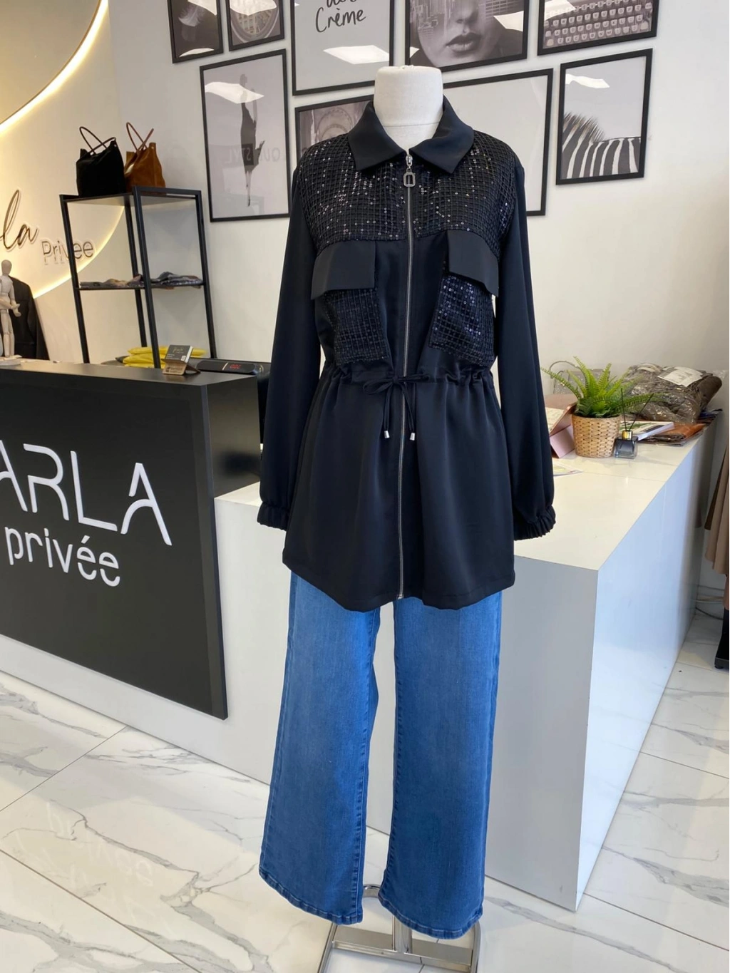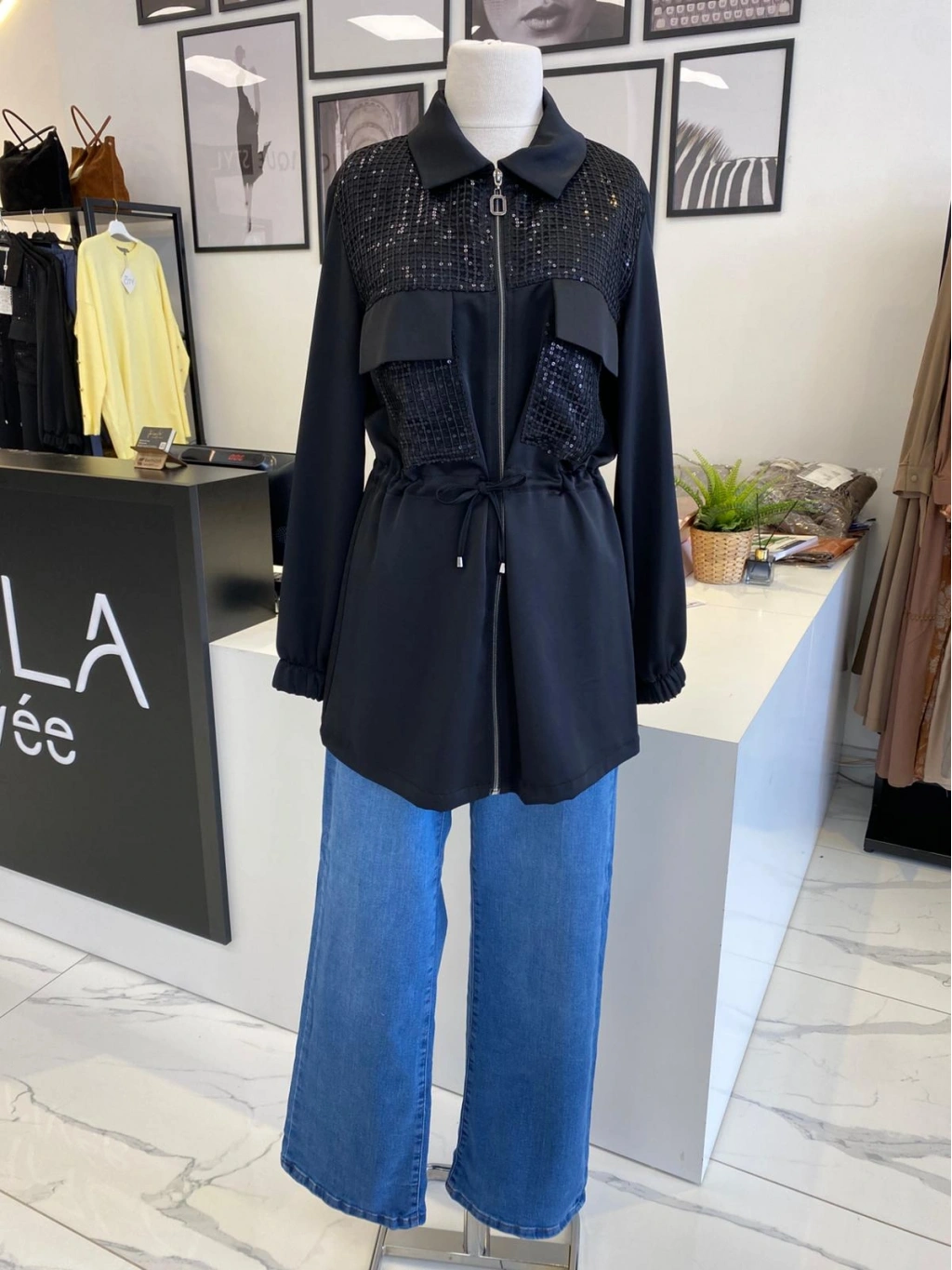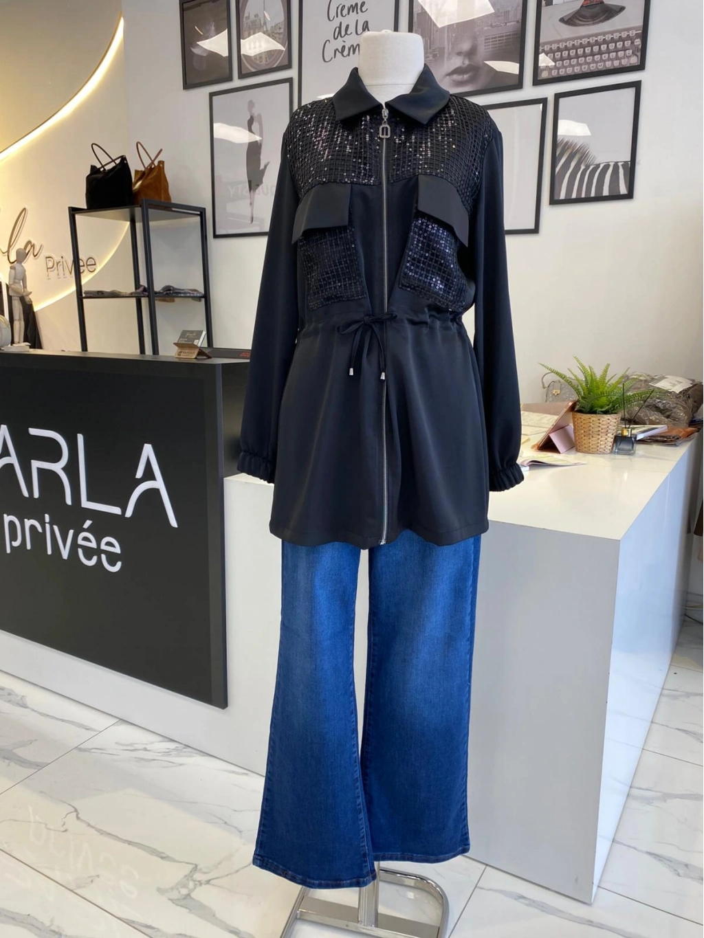 DENİM ÜZERİ TAŞLI DAR PAÇA PANTALON