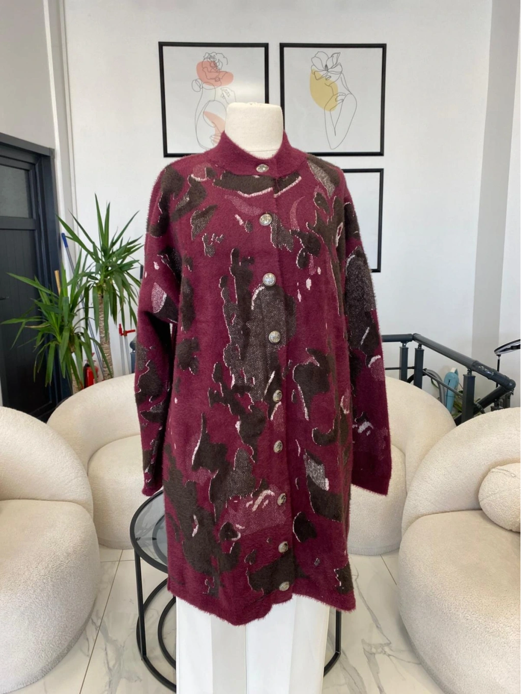 ANGORA DESENLİ HIRKA BORDO