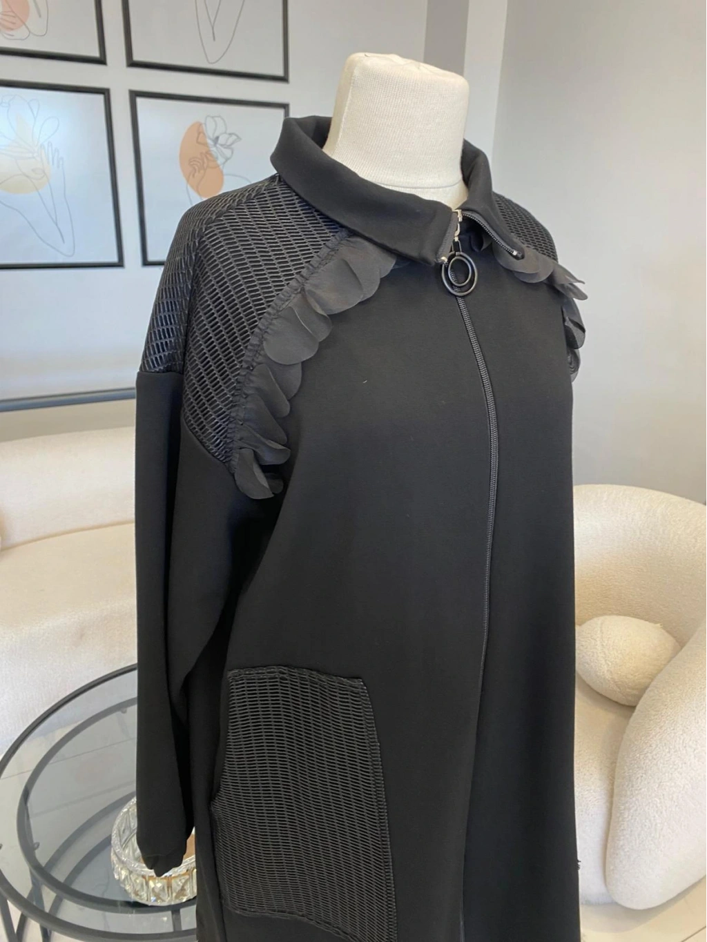 DULE BÜYÜK BEDEN SİYAH KAPŞONLU KAP