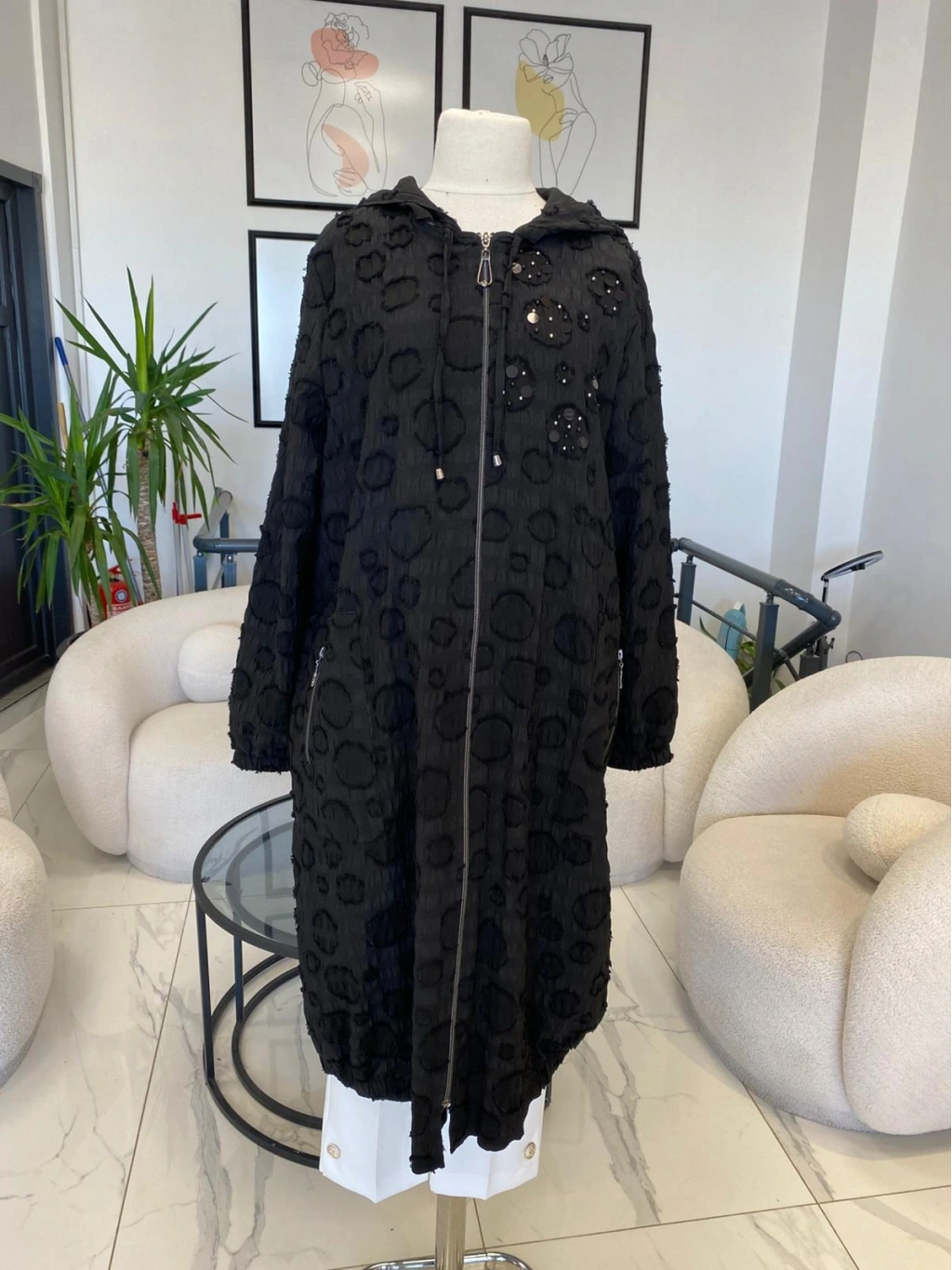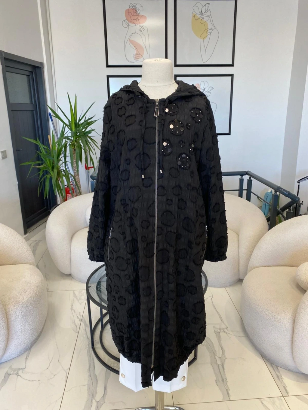 DULE BÜYÜK BEDEN SİYAH KAPŞONLU KAP