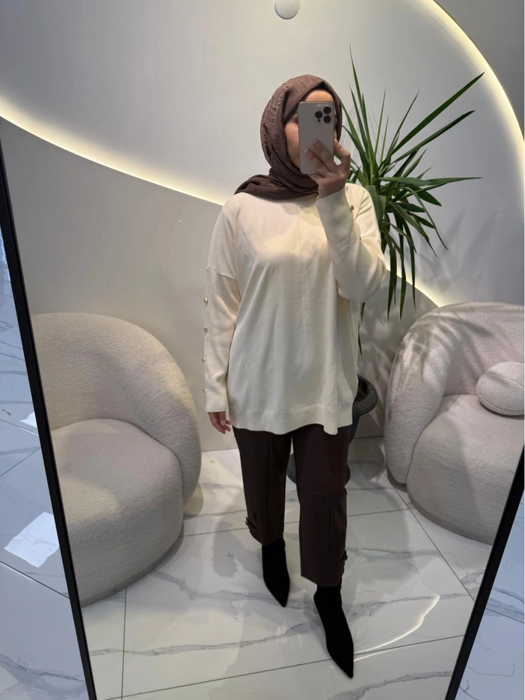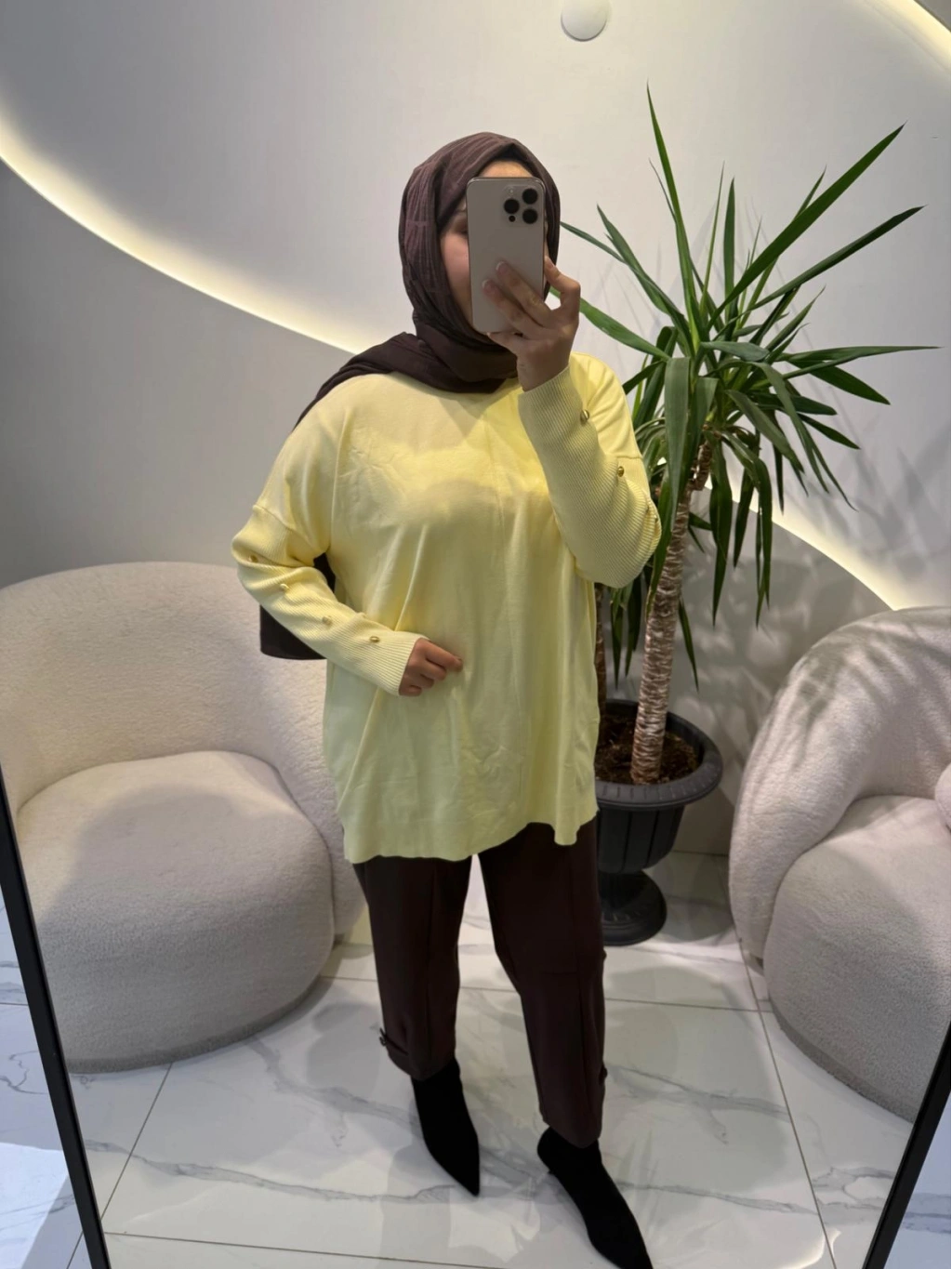 düğmeli angora kazak