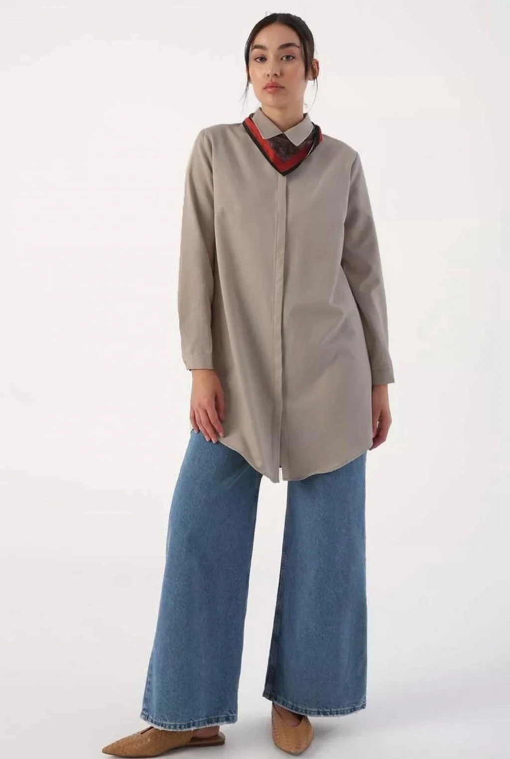 ALLDAY GİZLİ PATLI UZUN KOT GÖMLEK