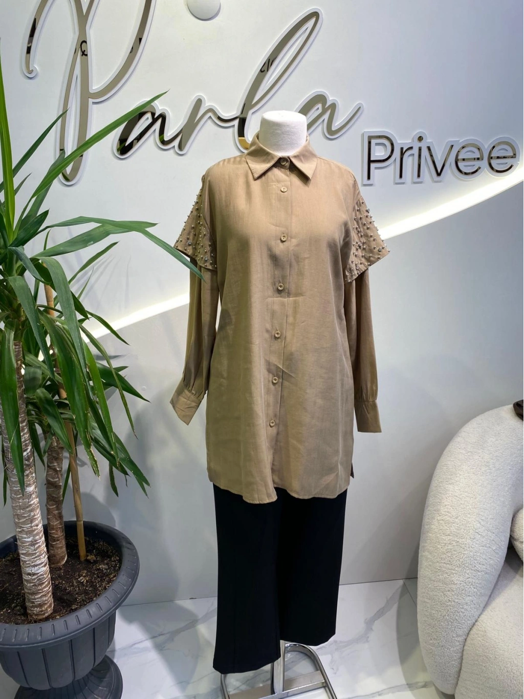 2K TAŞLI EKRU GÖMLEK
