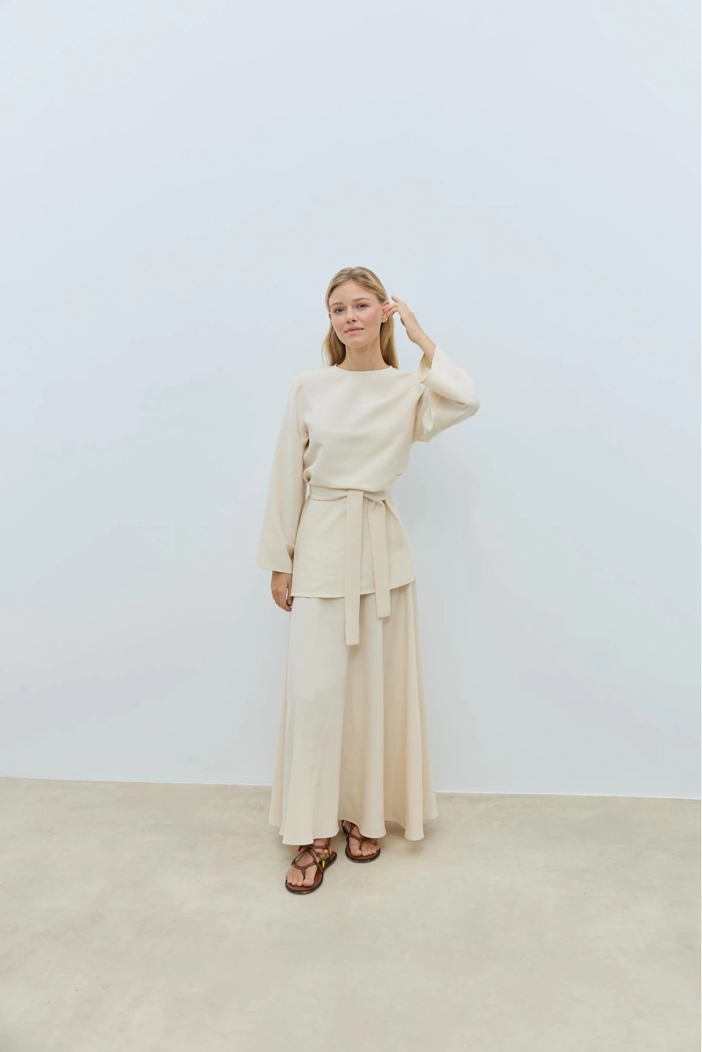 BOOD Kuşaklı Tencel Vanilya Bluz