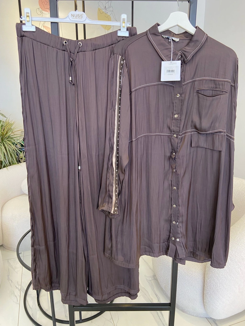 NURCAN ÇETİN ŞİFON DETAYLI İKİLİ TAKIM KAHVERENGİ