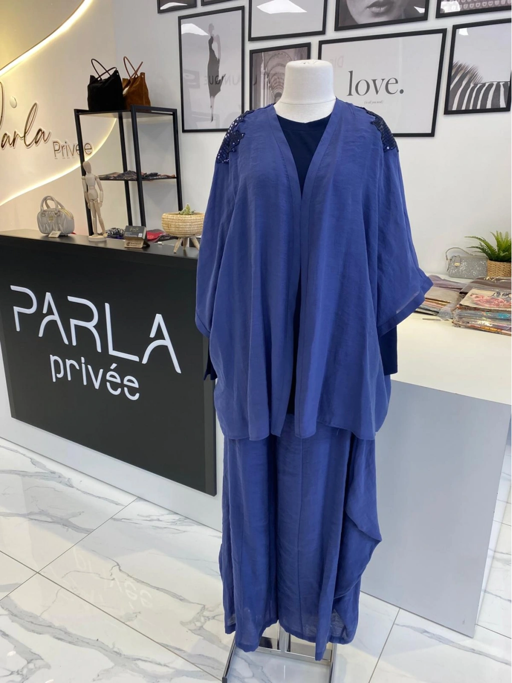 MİARUJ İNDİGO KİMONO ŞALVAR PANTALON TAKIM