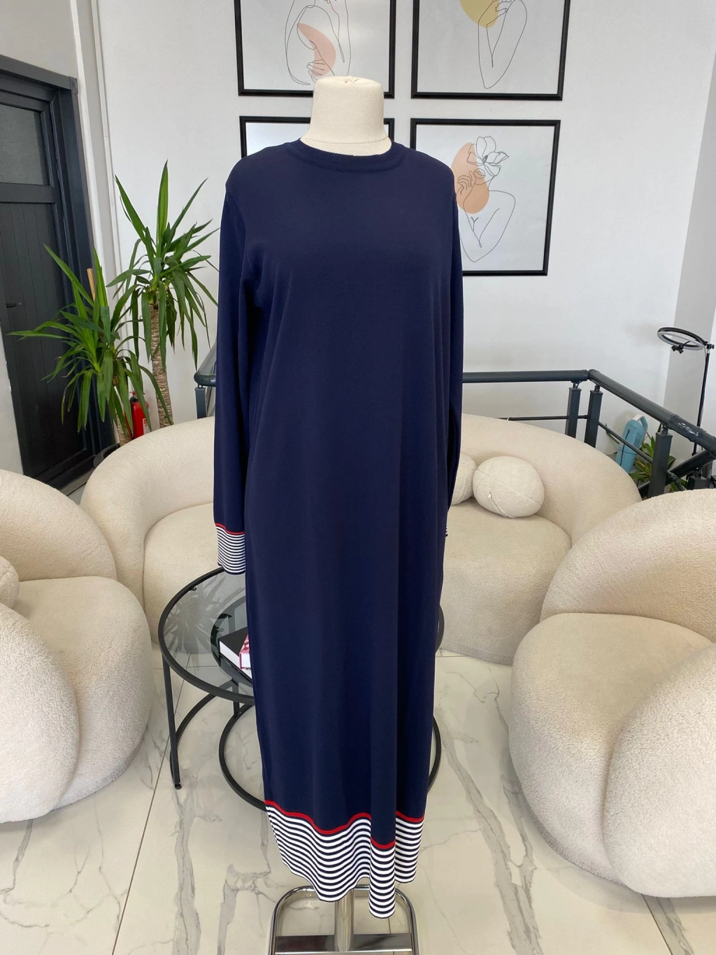 NURCAN ÇETİN KOLLARI ÇİZGİLİ ELBİSE