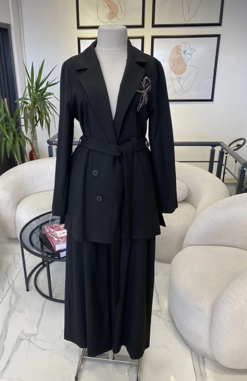 NURCAN ÇETİN ŞİFON DETAYLI İKİLİ TAKIM SİYAH