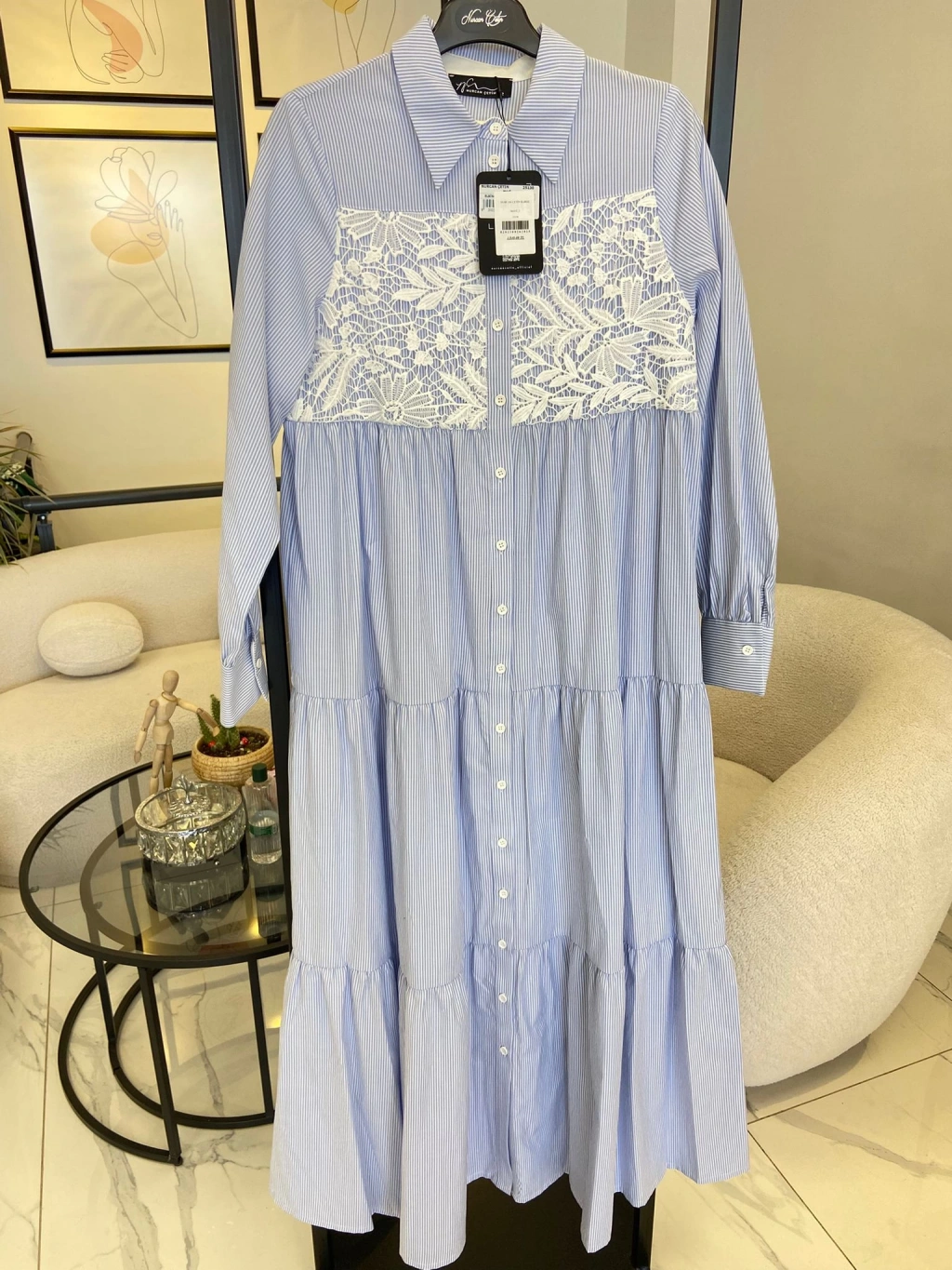 NURCAN ÇETİN KOLLARI ÇİZGİLİ ELBİSE