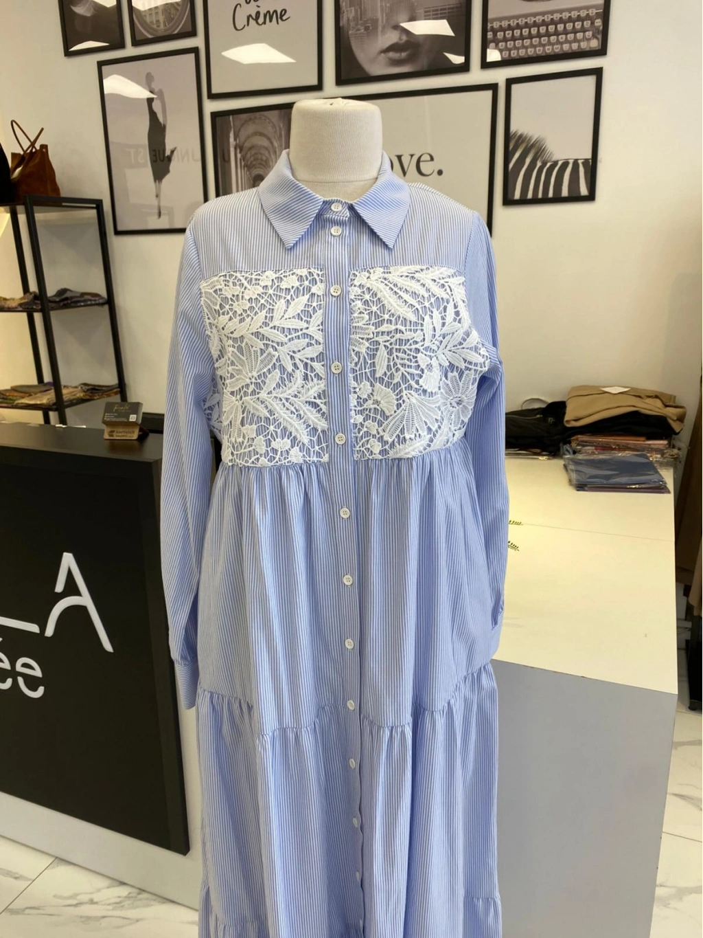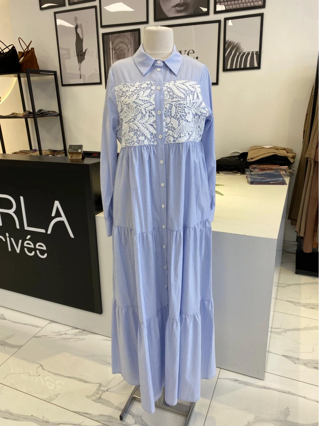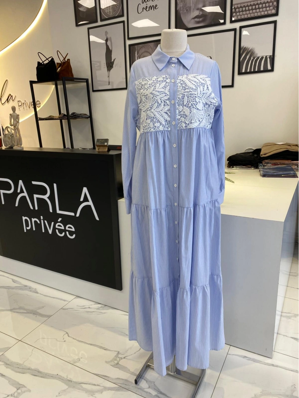 PARLA DANTEL DÜĞMELİ VİSKON ELBİSE