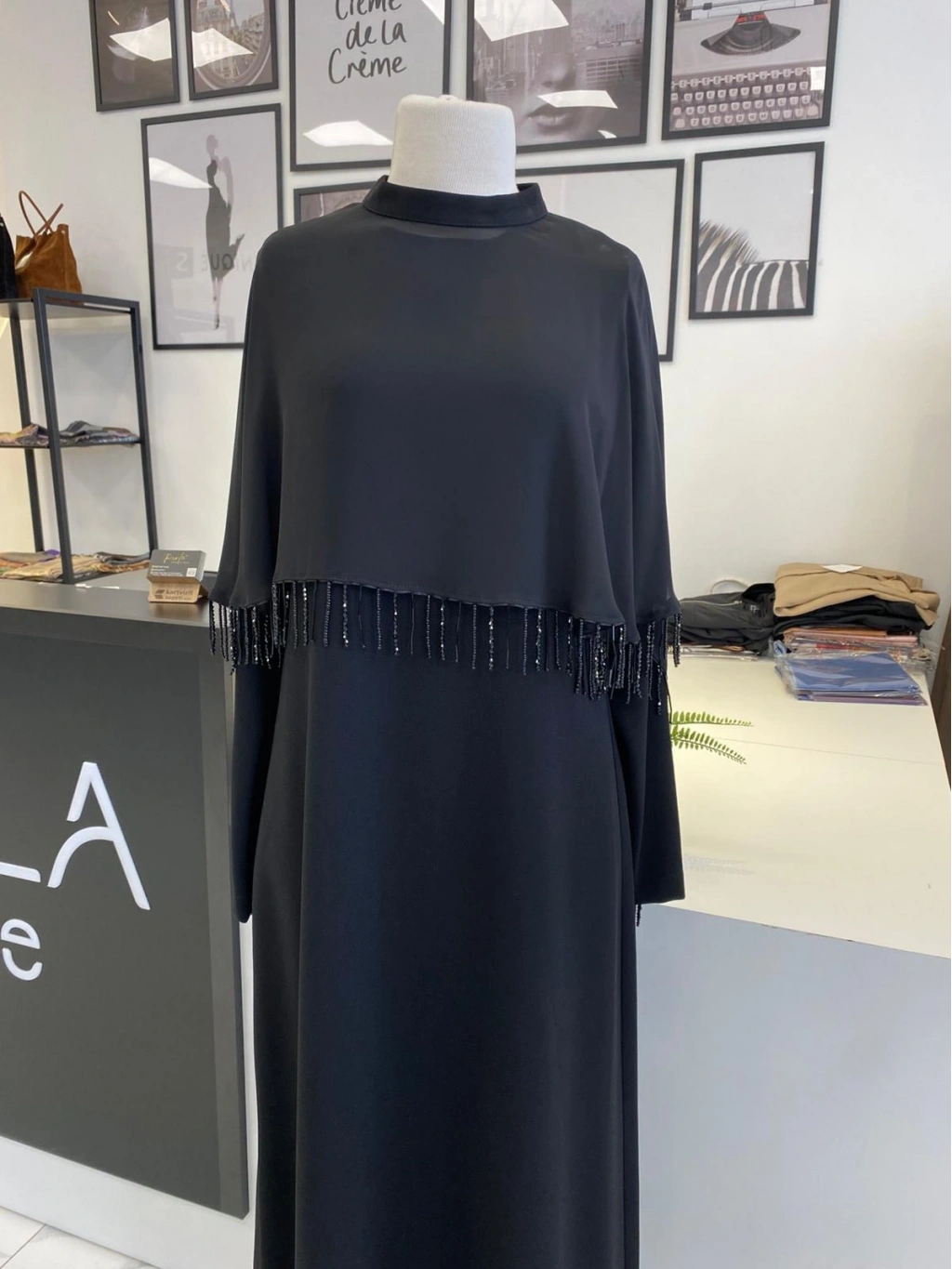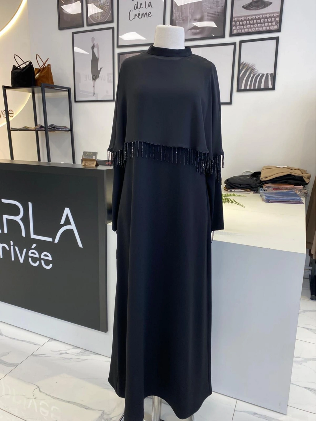 PARLA DANTEL DÜĞMELİ VİSKON ELBİSE
