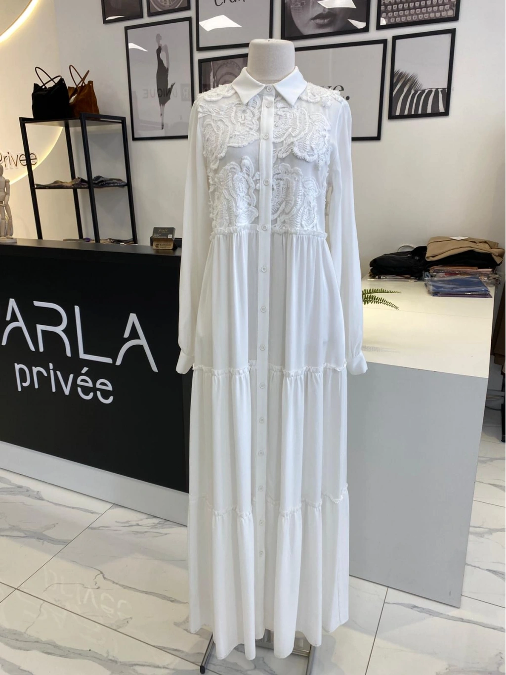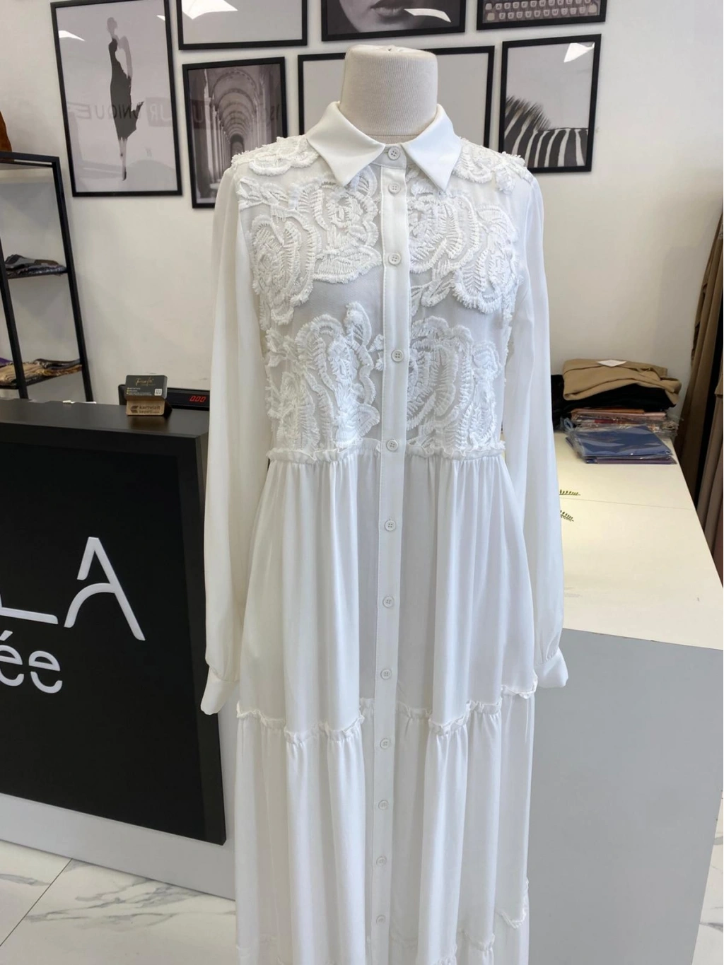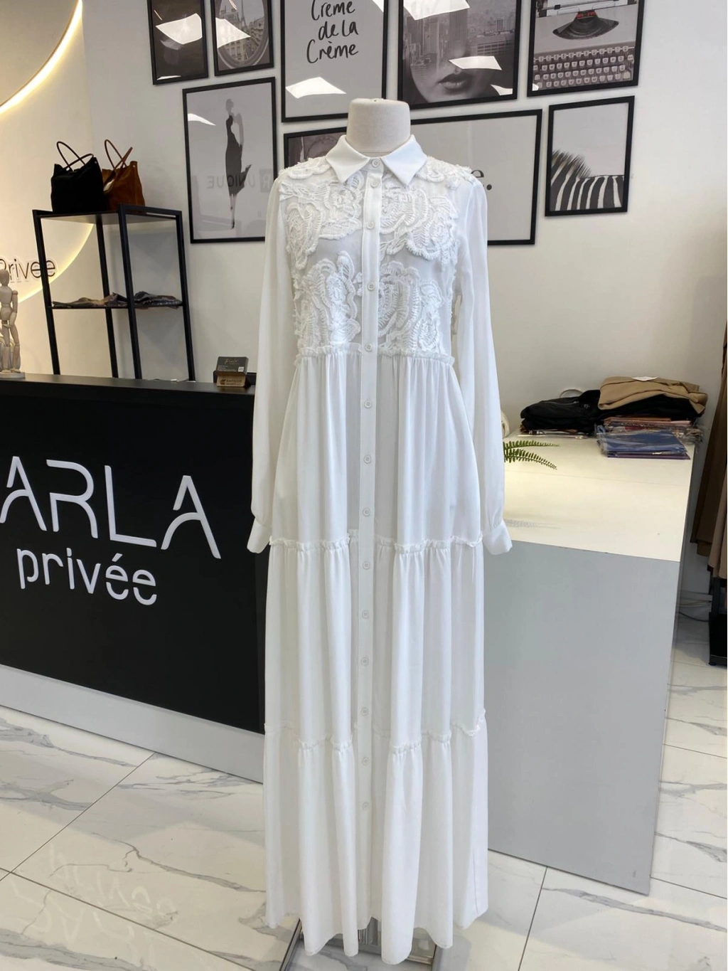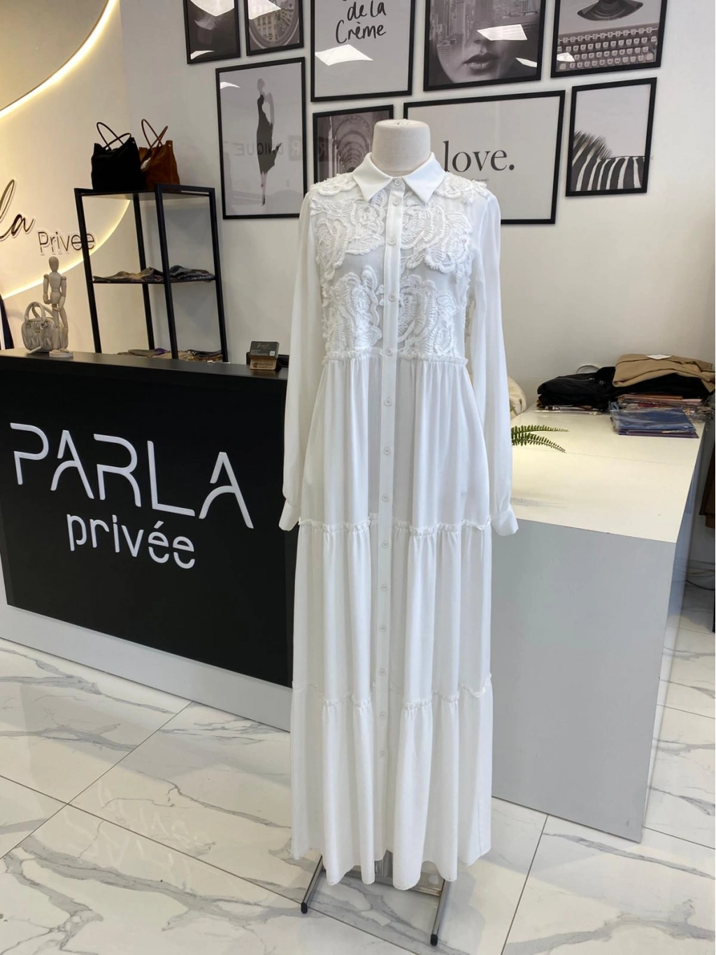 PARLA DANTEL DÜĞMELİ VİSKON ELBİSE