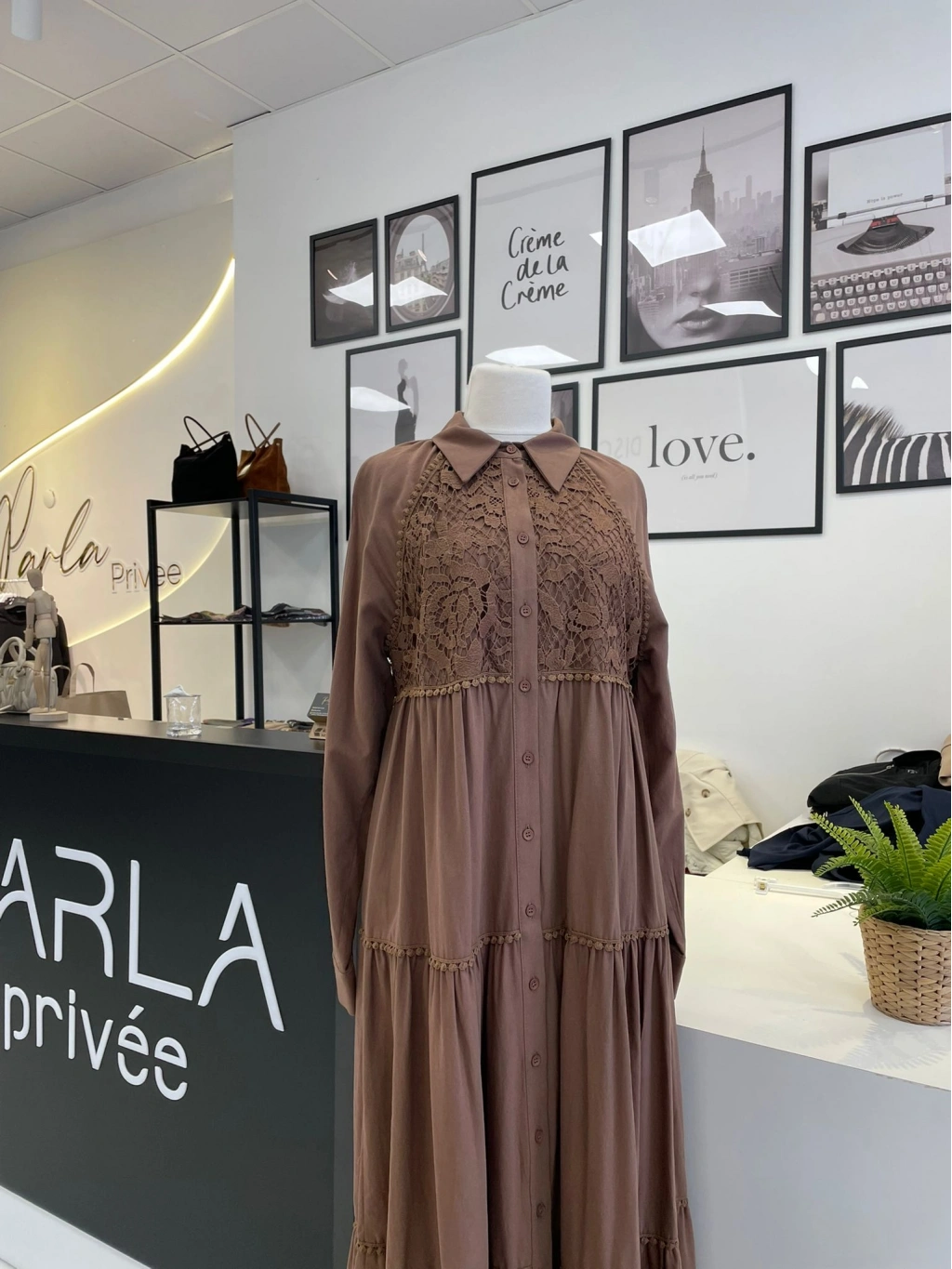 PARLA DANTEL DÜĞMELİ VİSKON ELBİSE