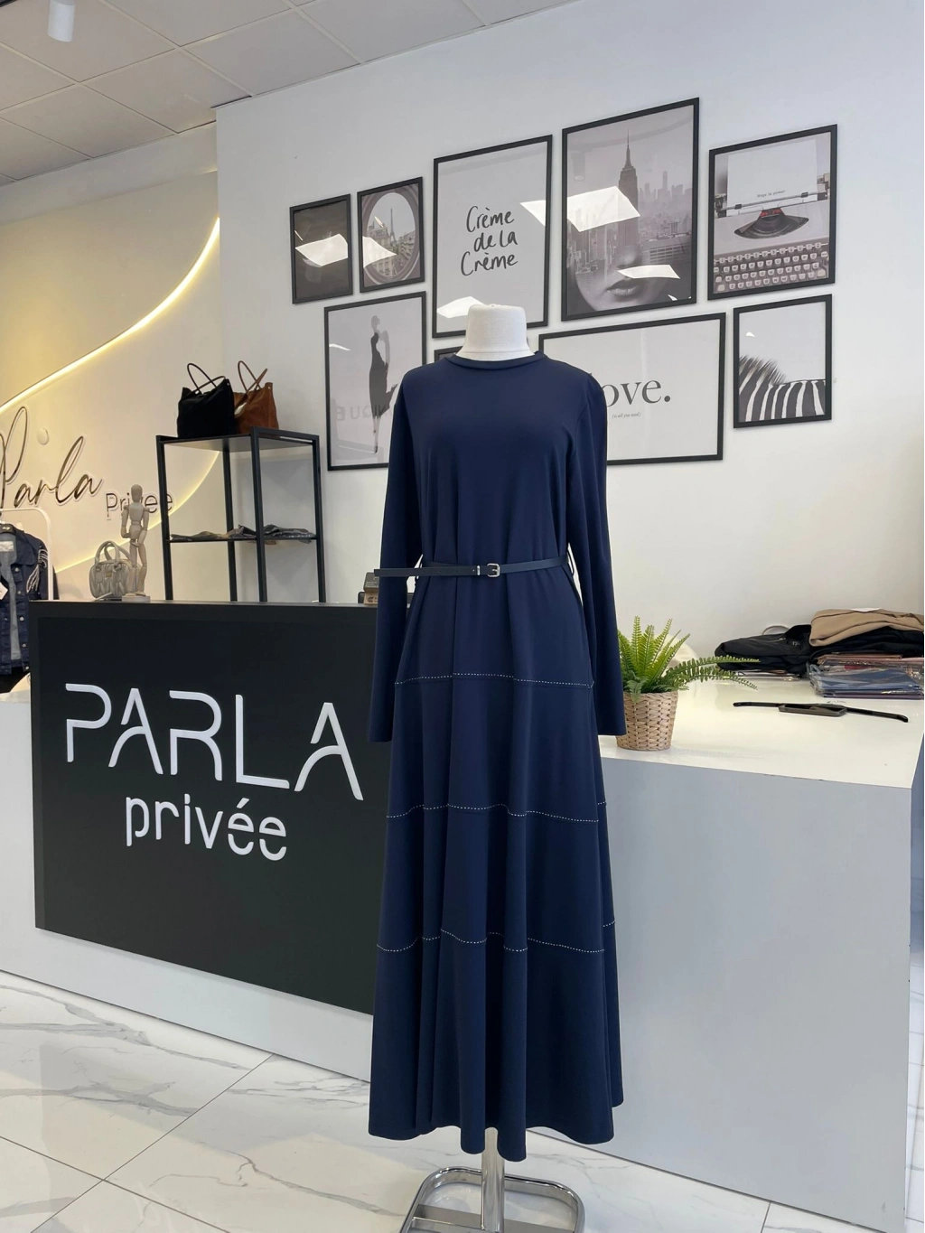 PARLA DANTEL DÜĞMELİ VİSKON ELBİSE