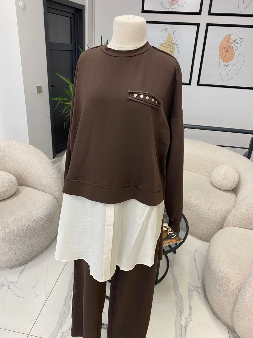 NURCAN ÇETİN FİYONK DETAYLI ETEKLİ TAKIM KAHVERENGİ
