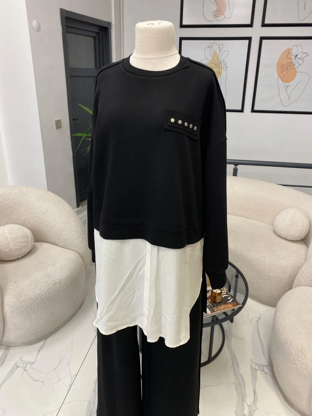 NURCAN ÇETİN ŞİFON DETAYLI İKİLİ TAKIM SİYAH