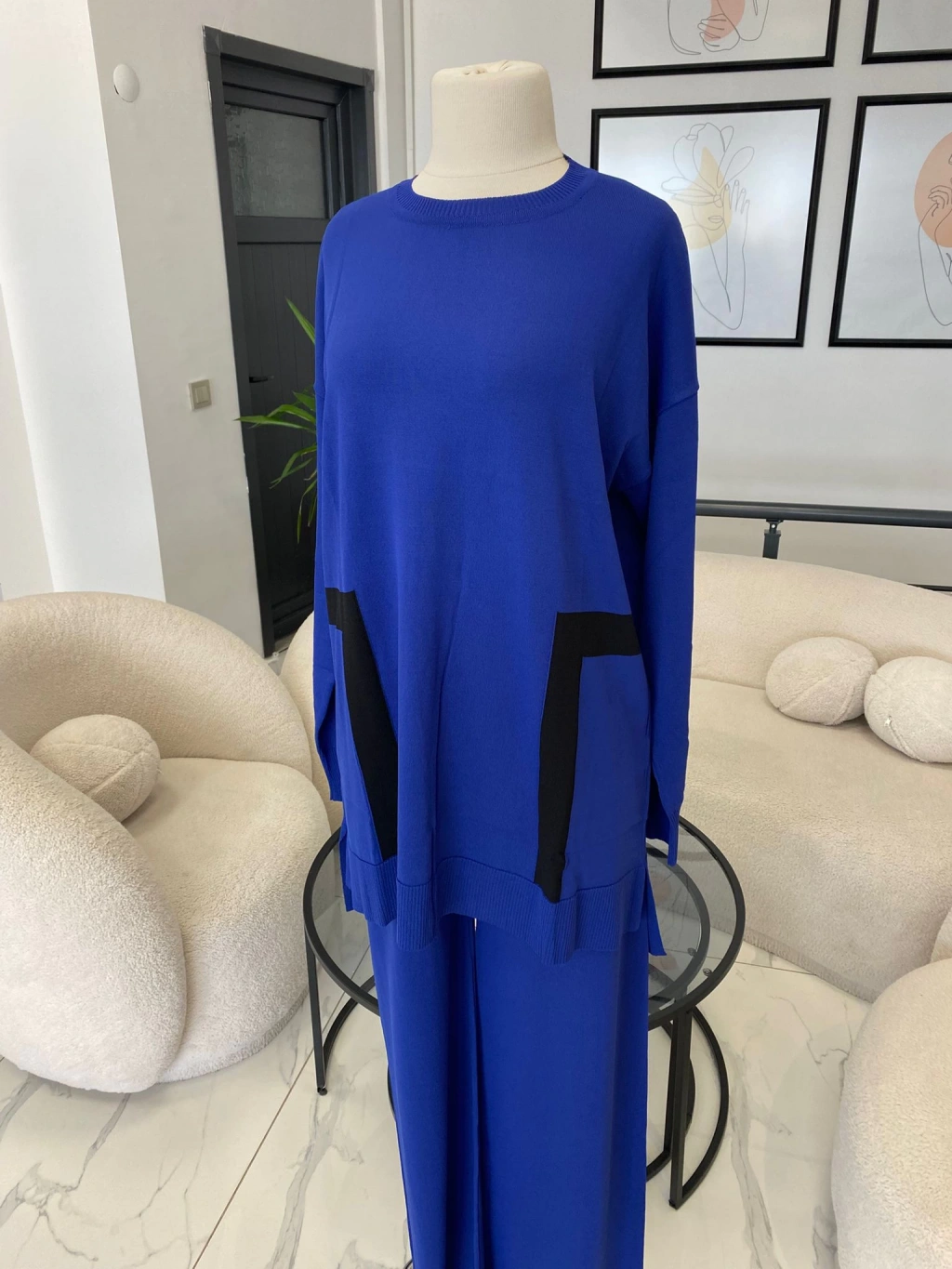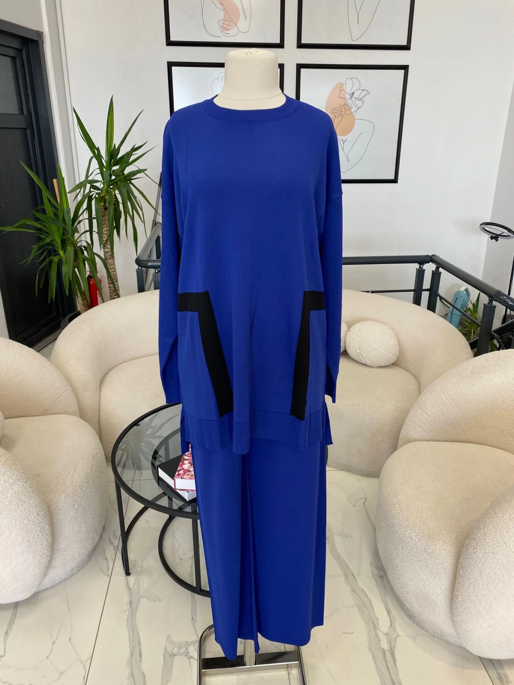 NURCAN ÇETİN ŞİFON DETAYLI İKİLİ TAKIM LACİVERT