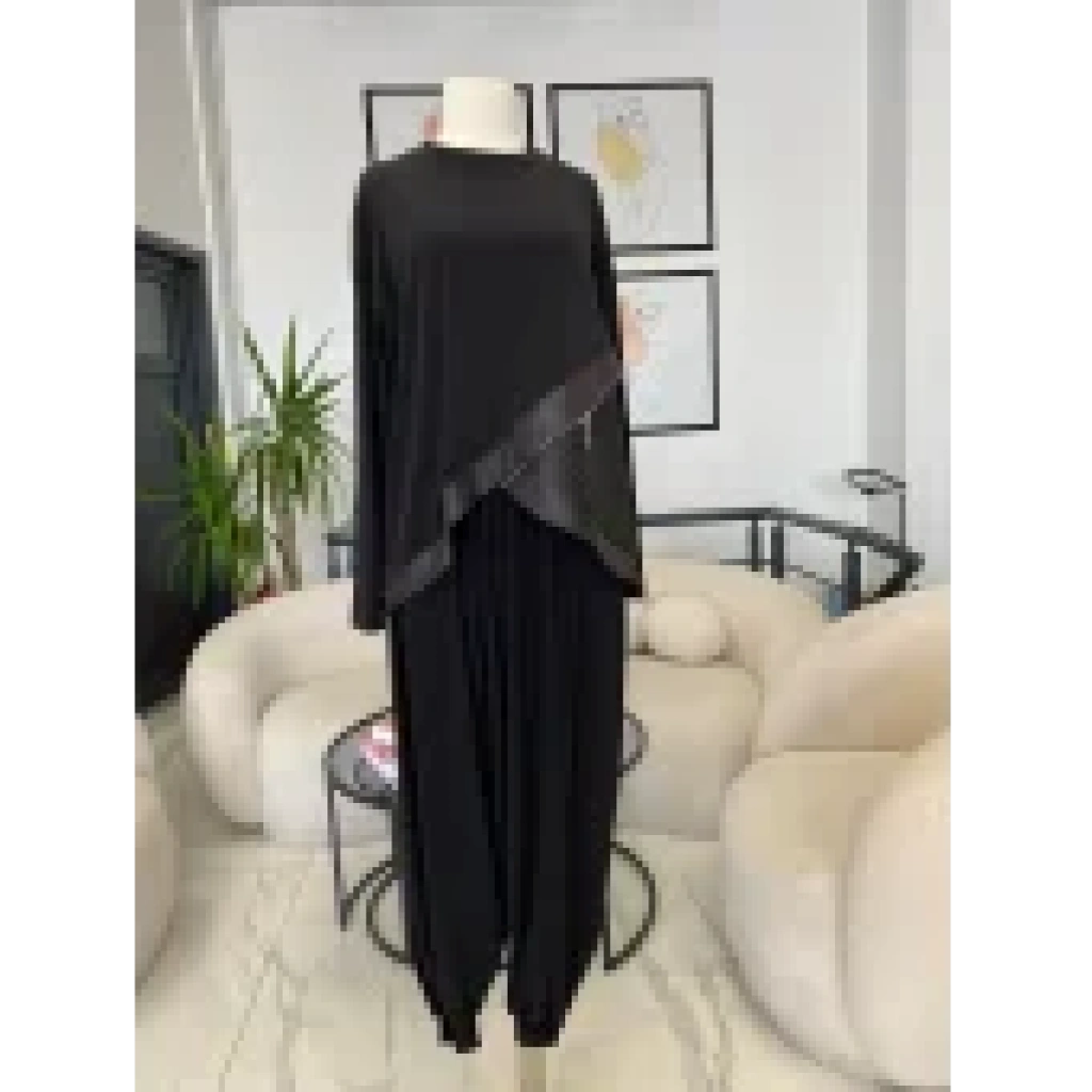 NURCAN ÇETİN ŞİFON DETAYLI İKİLİ TAKIM SİYAH