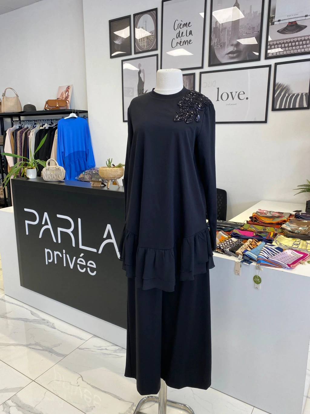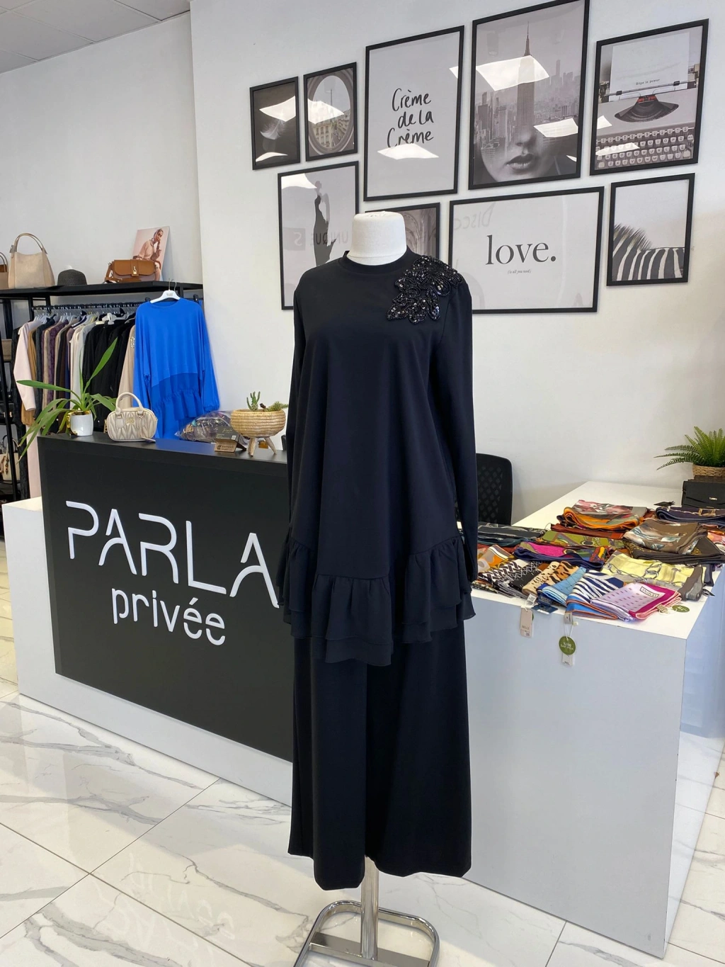 NURCAN ÇETİN FİYONK DETAYLI ETEKLİ TAKIM SİYAH