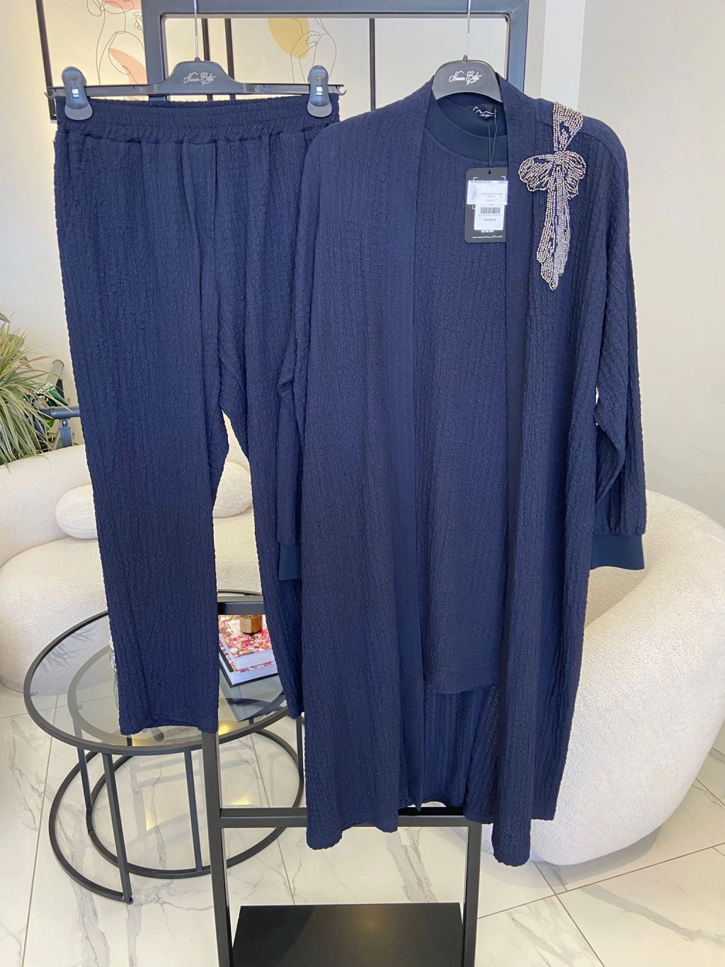 NURCAN ÇETİN ŞİFON DETAYLI İKİLİ TAKIM LACİVERT