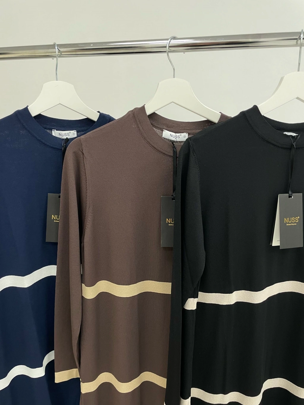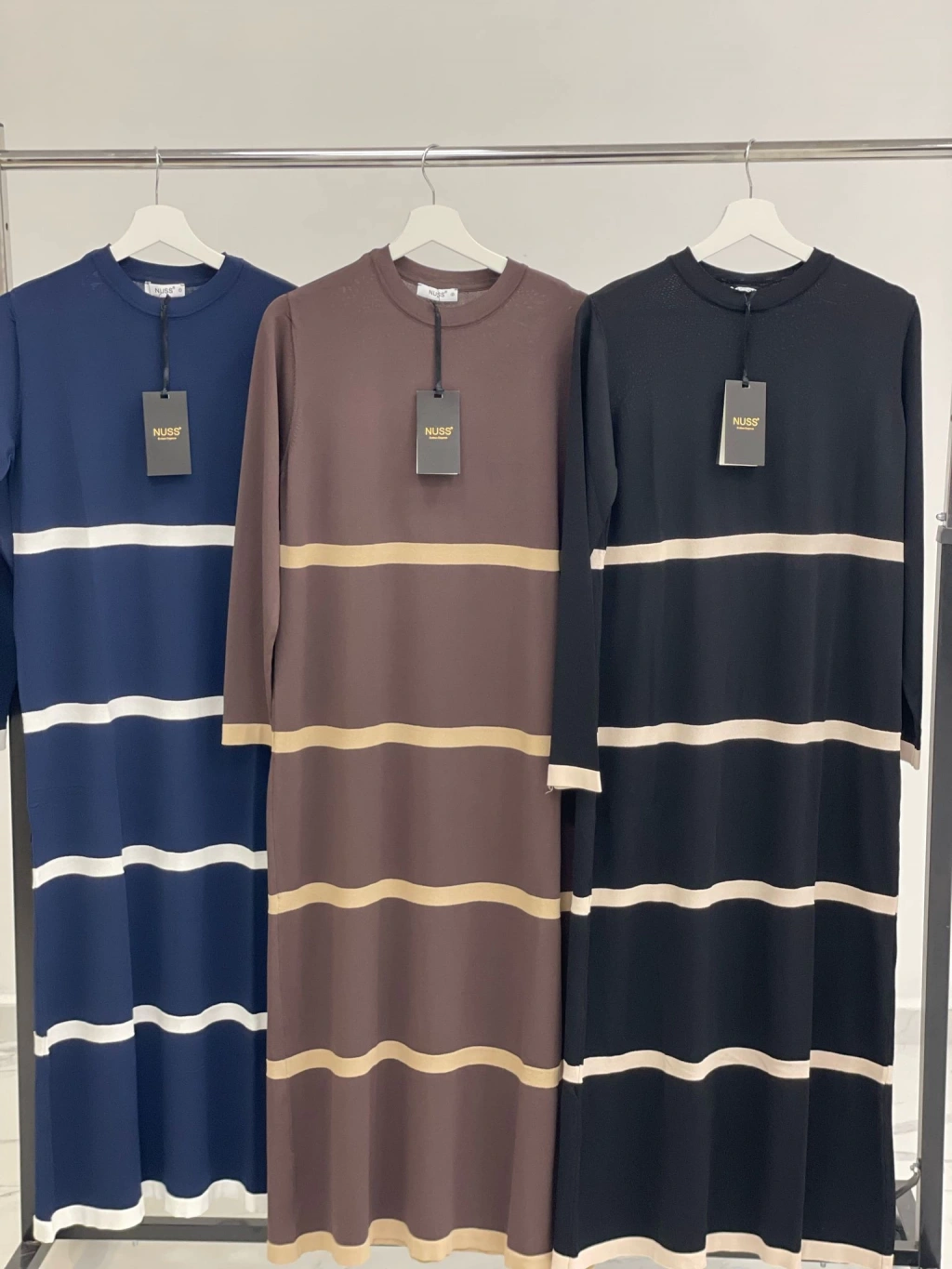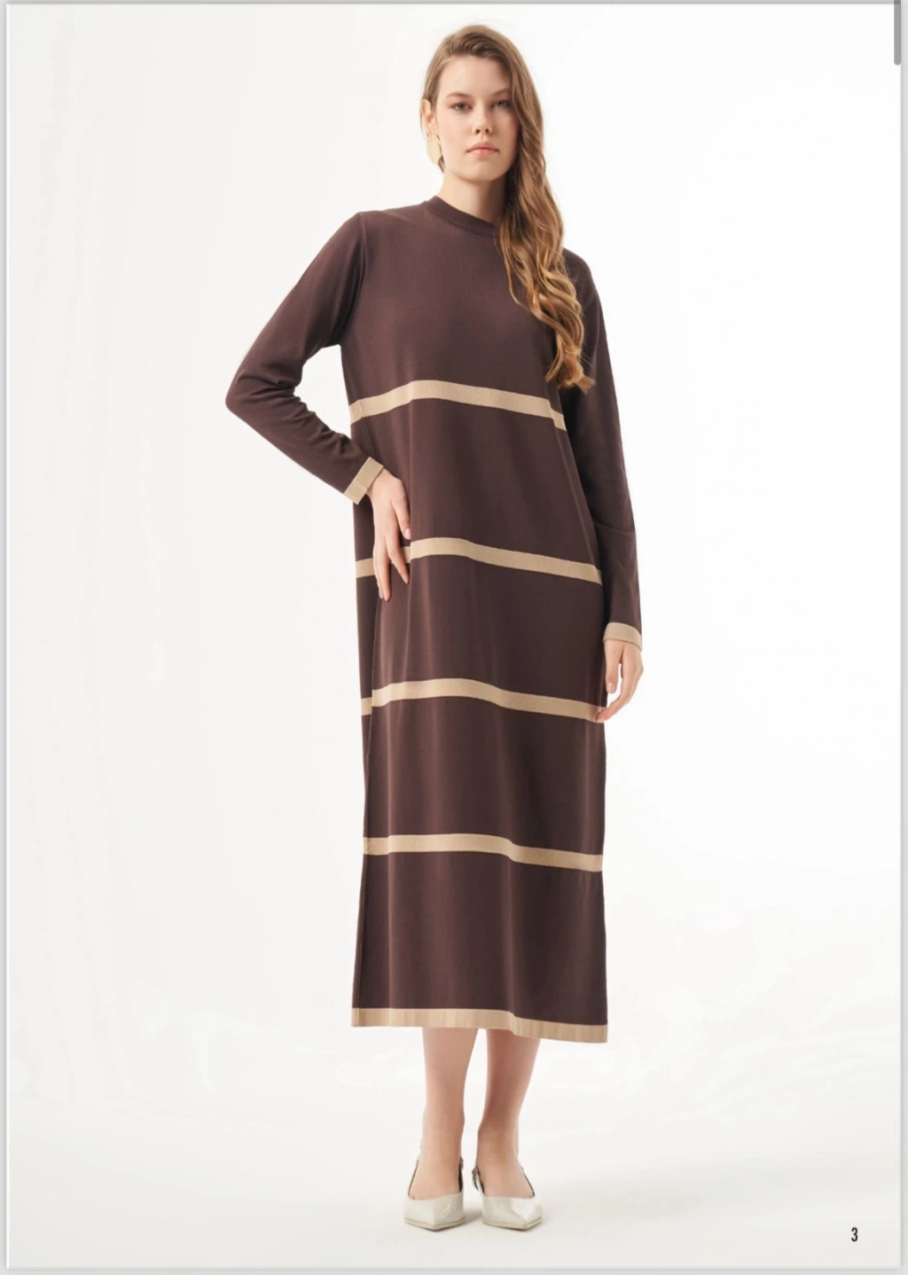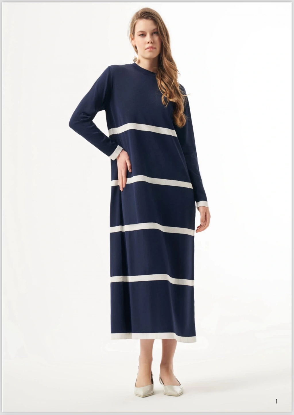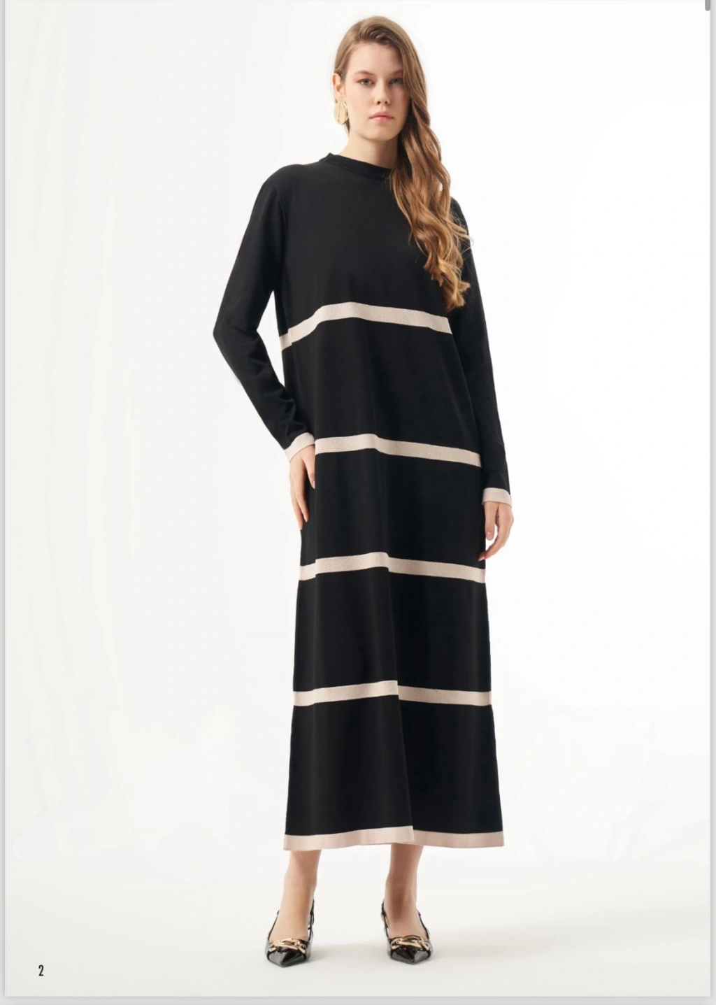 NURCAN ÇETİN KOLLARI ÇİZGİLİ ELBİSE