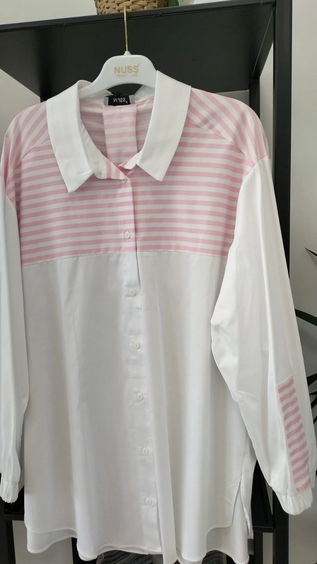 NUSS ÇİZGİLİ GÖMLEK pembe