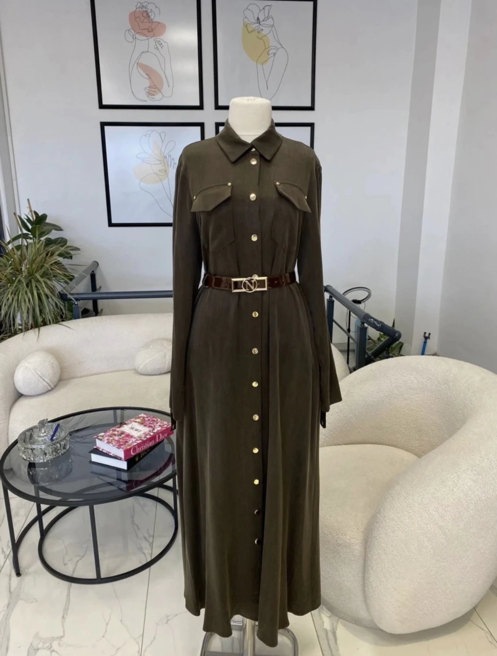 NURCAN ÇETİN SÜET DETAYLI ELBİSE