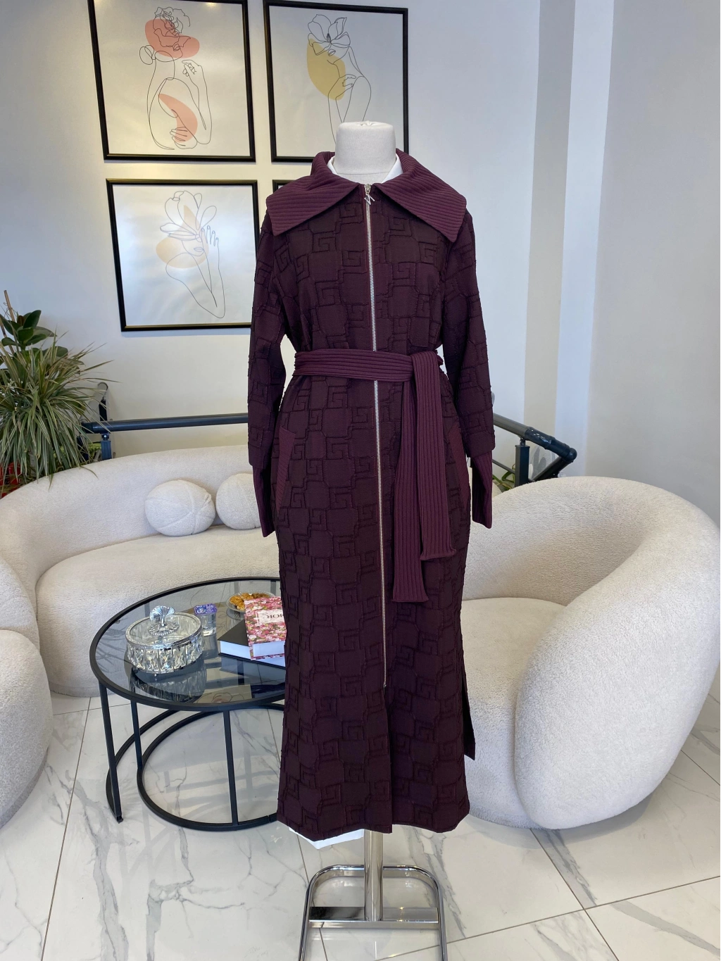 ANGORA DESENLİ HIRKA BORDO