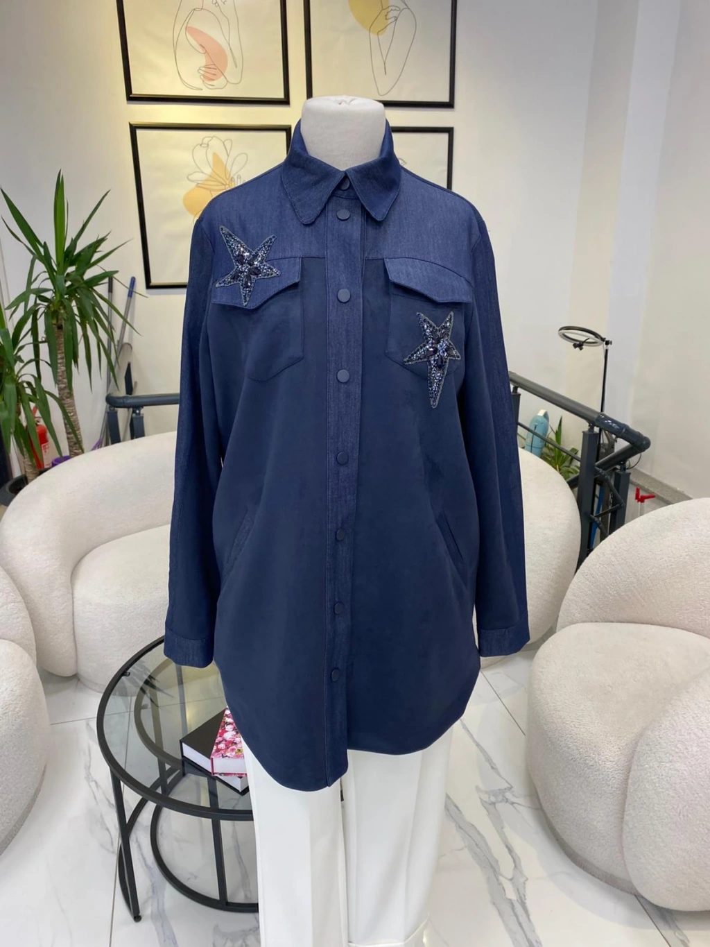 NUSS JAKARLI UZUN PARDESÜ LACİVERT