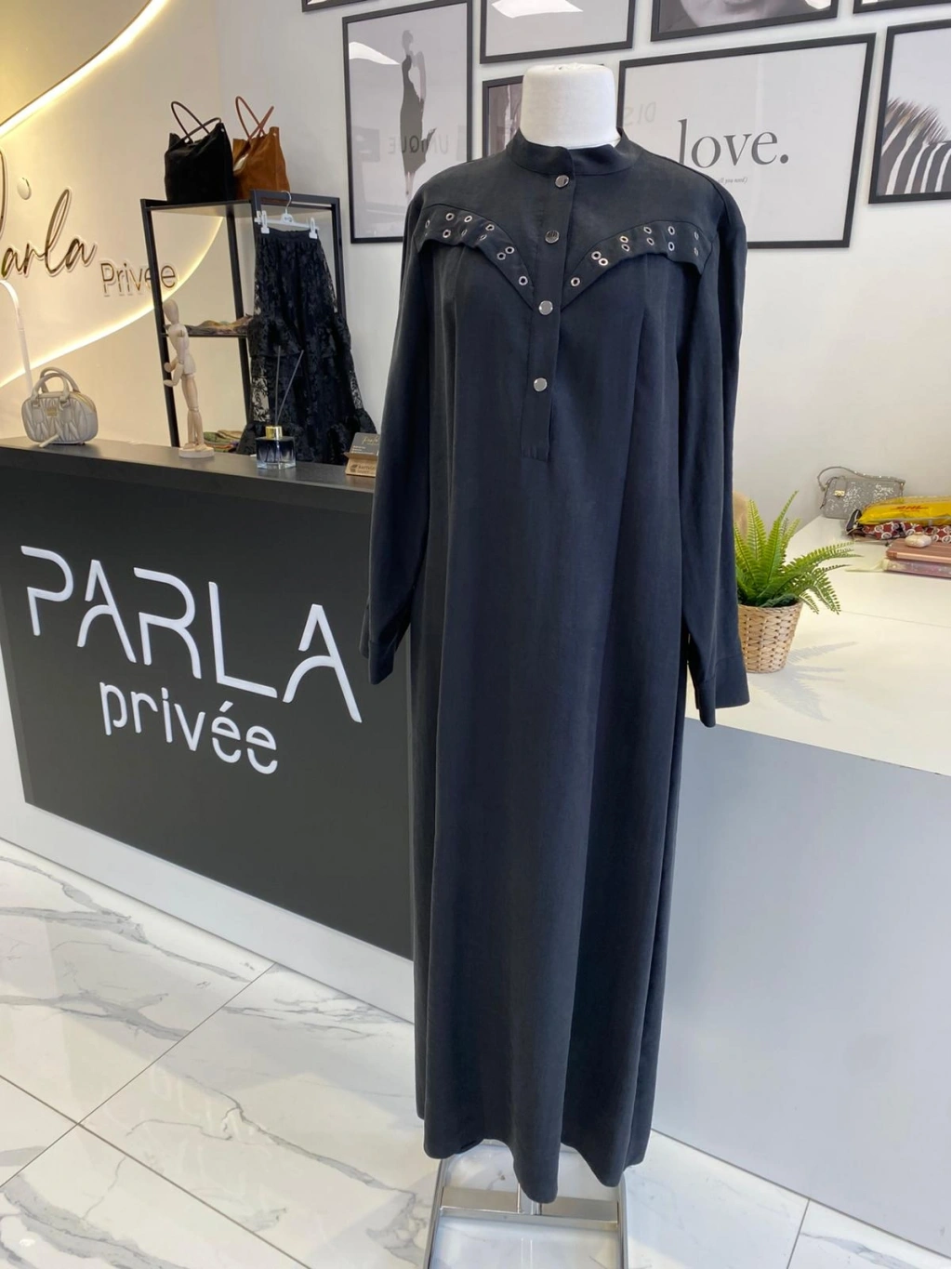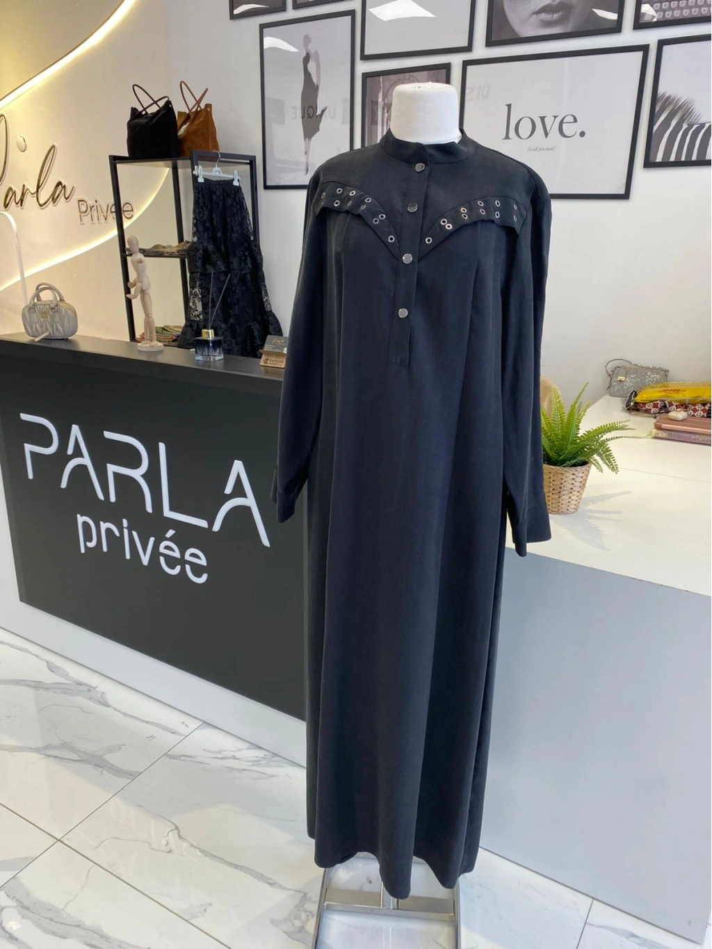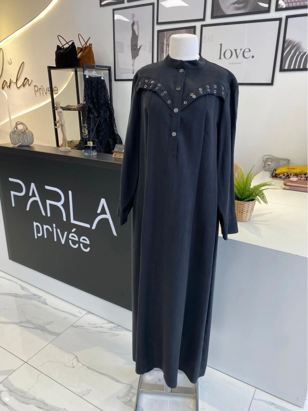 PARLA DANTEL DÜĞMELİ VİSKON ELBİSE