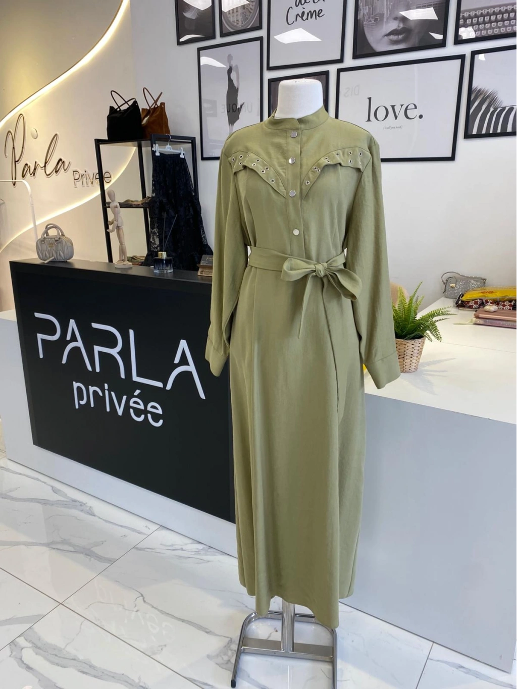 PARLA DANTEL DÜĞMELİ VİSKON ELBİSE