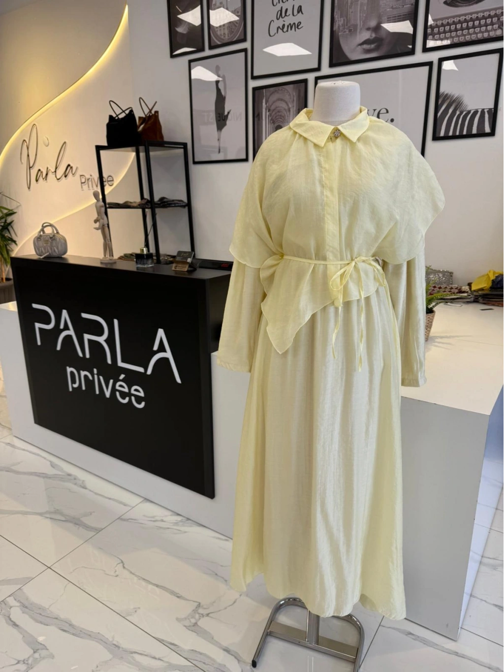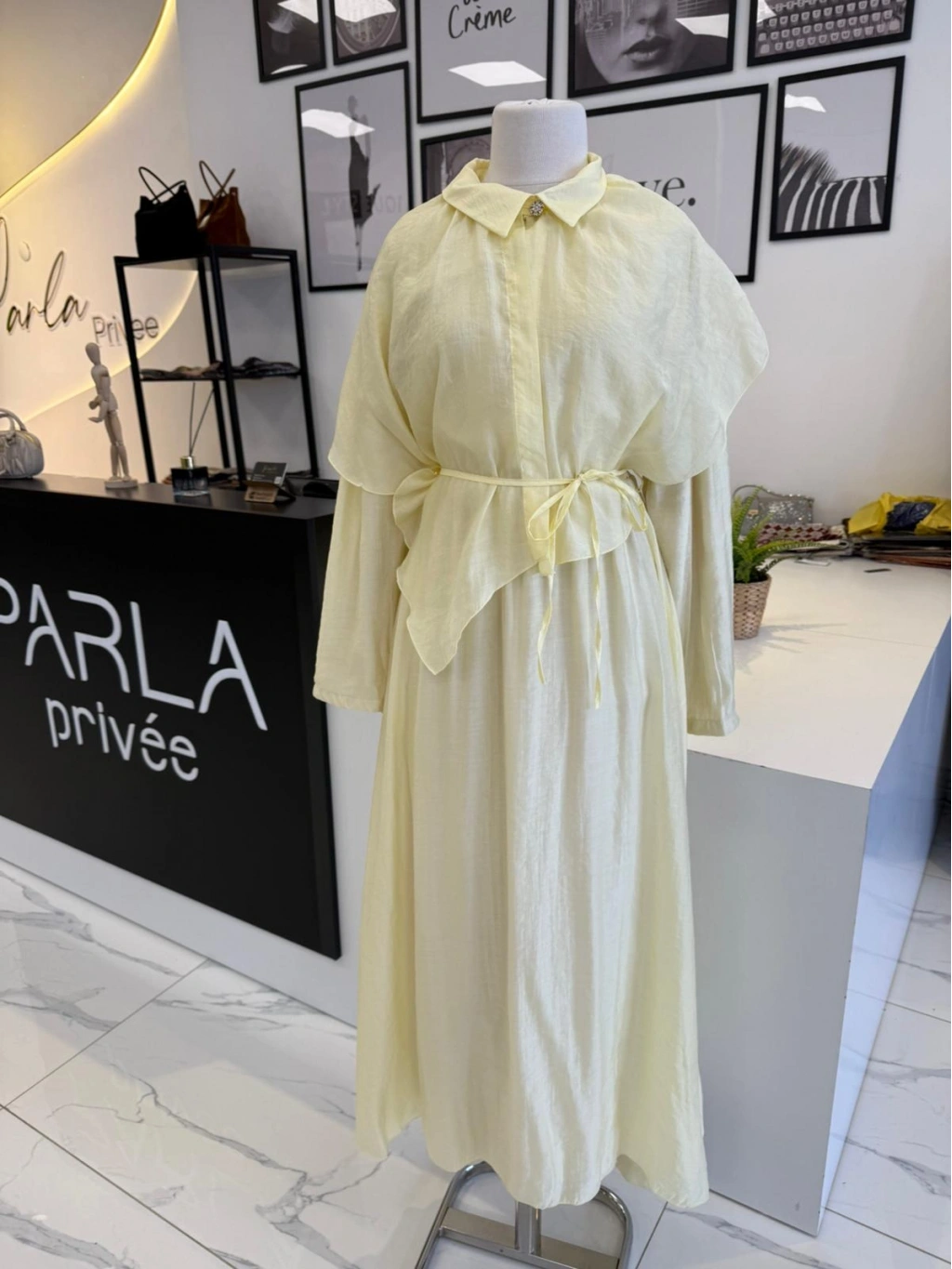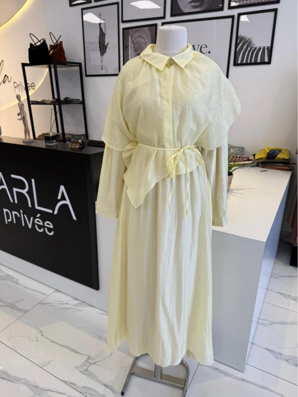 PARLA YAKASI ŞAL DETAYLI ELBİSE