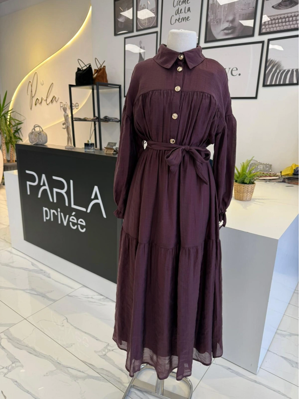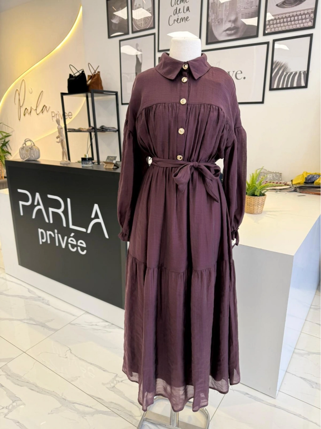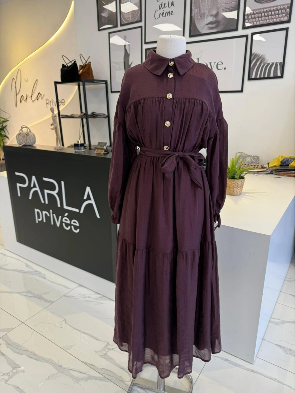 PARLA YAKASI ŞAL DETAYLI ELBİSE