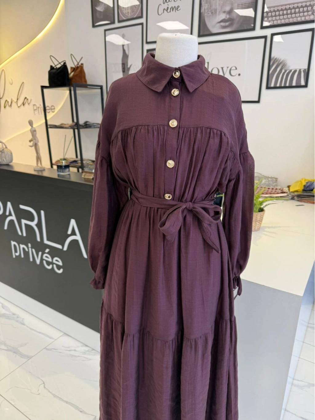 PARLA DANTEL DÜĞMELİ VİSKON ELBİSE