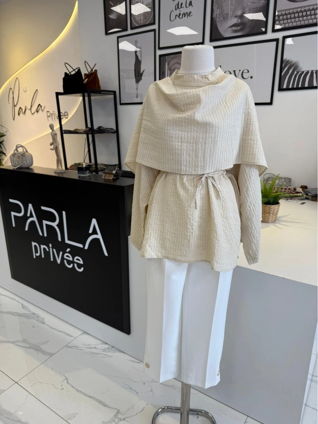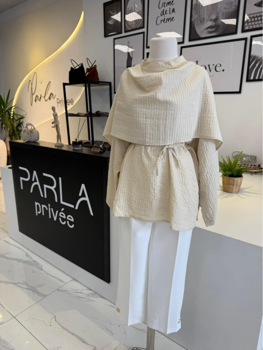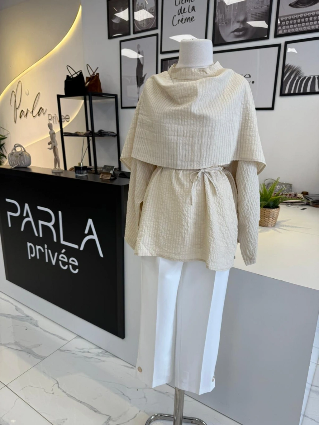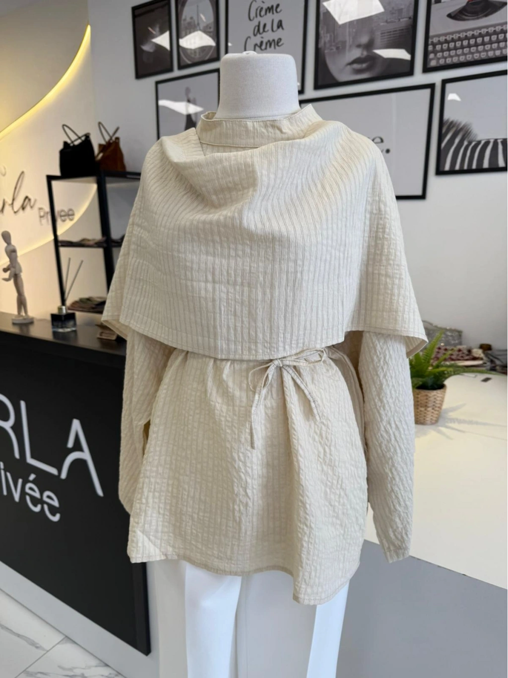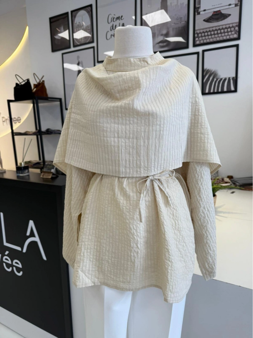 PARLA ŞAL DETAYLI EKRU GÖMLEK
