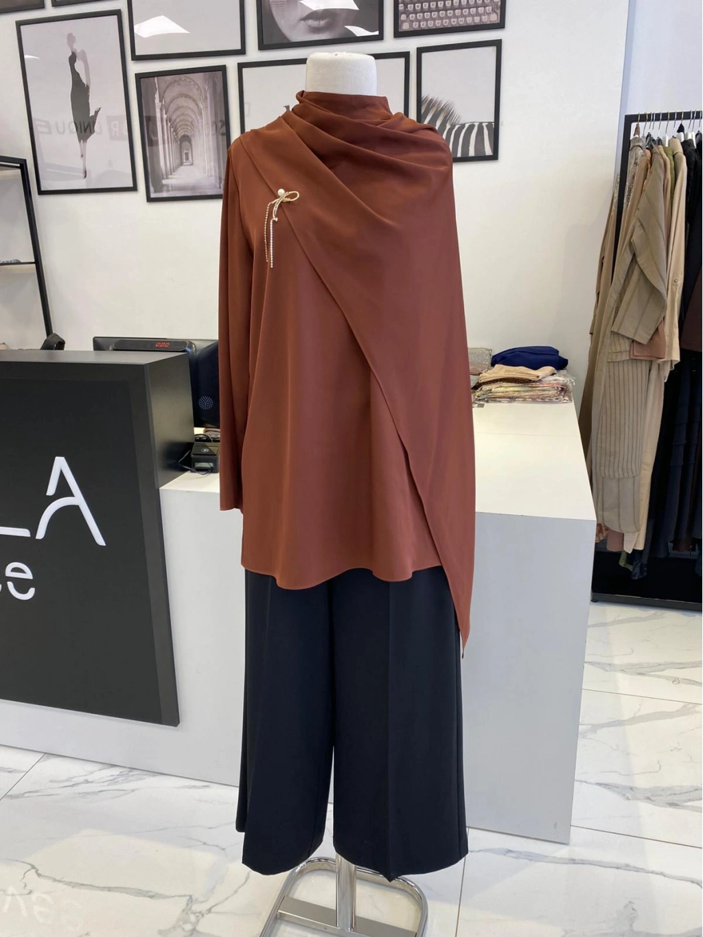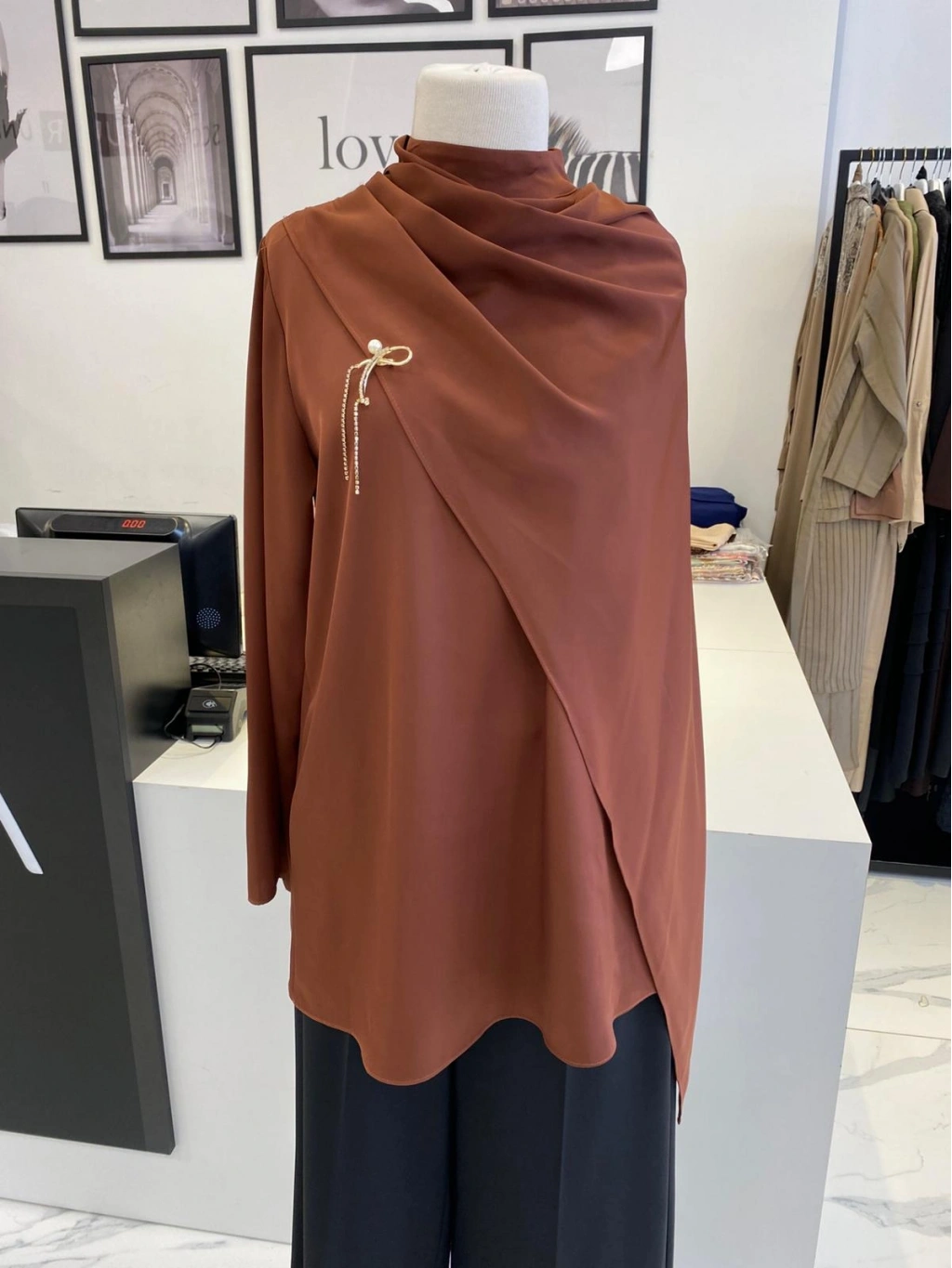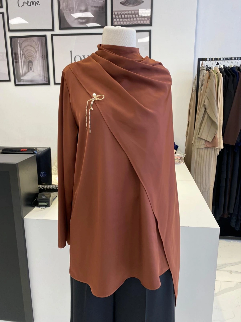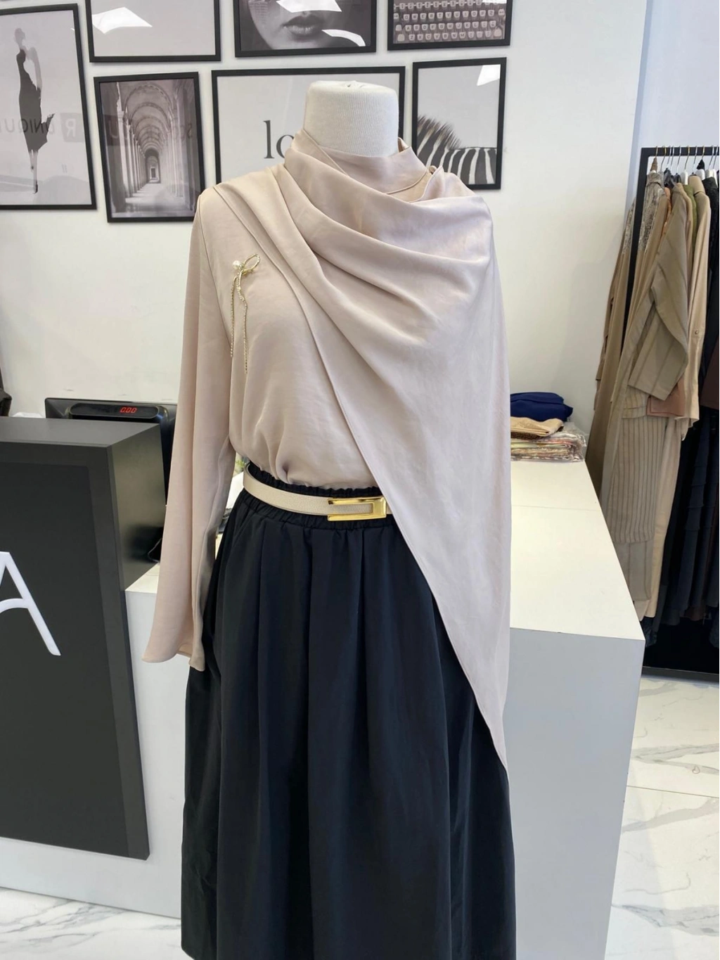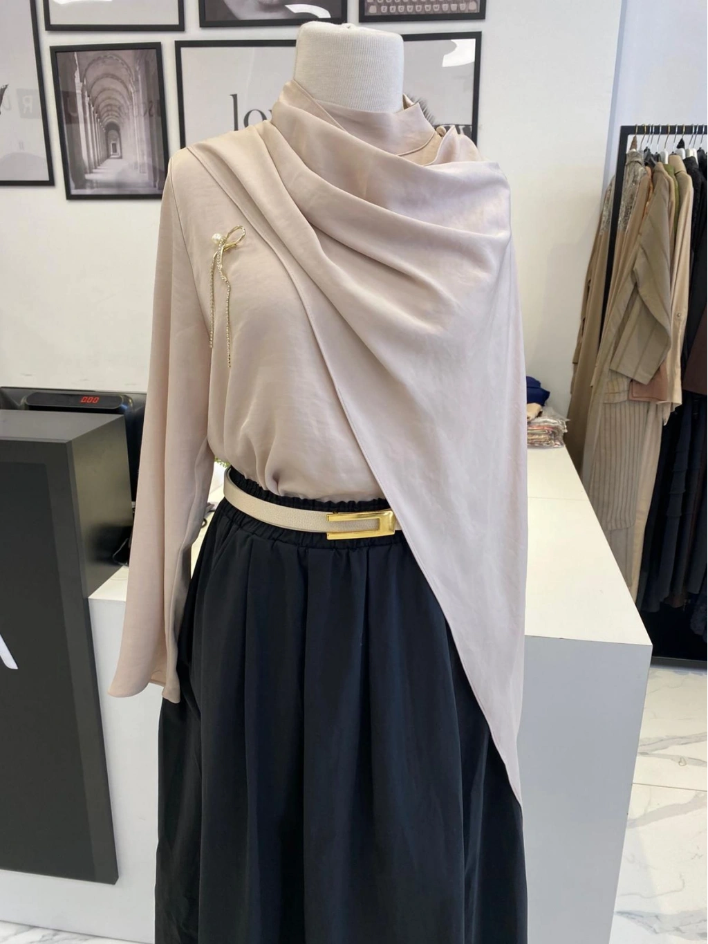 PARLA ŞAL DETAYLI EKRU GÖMLEK