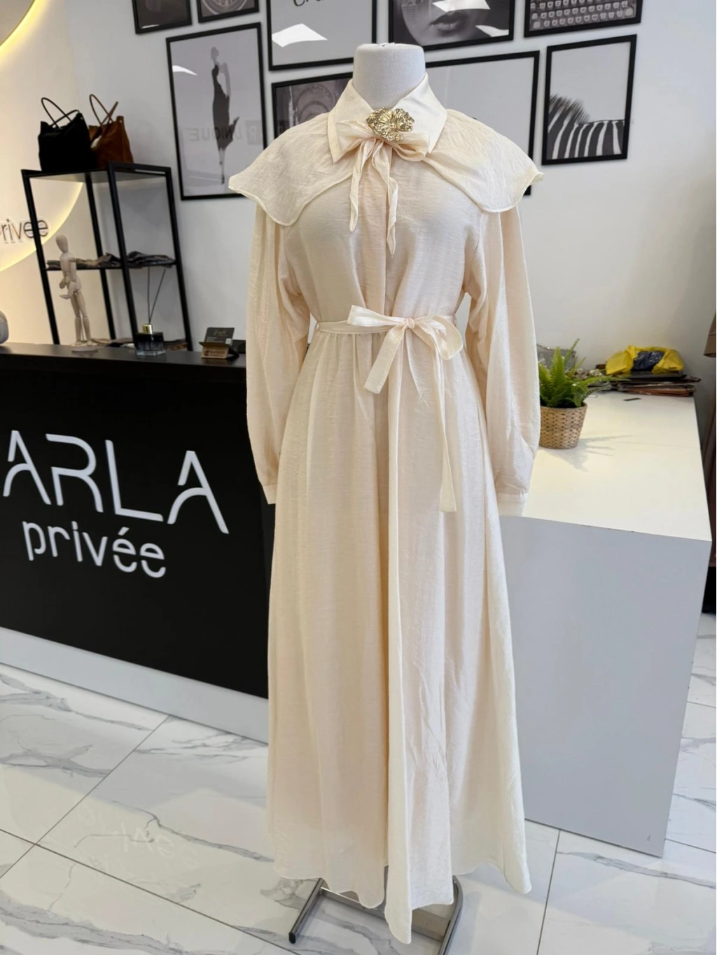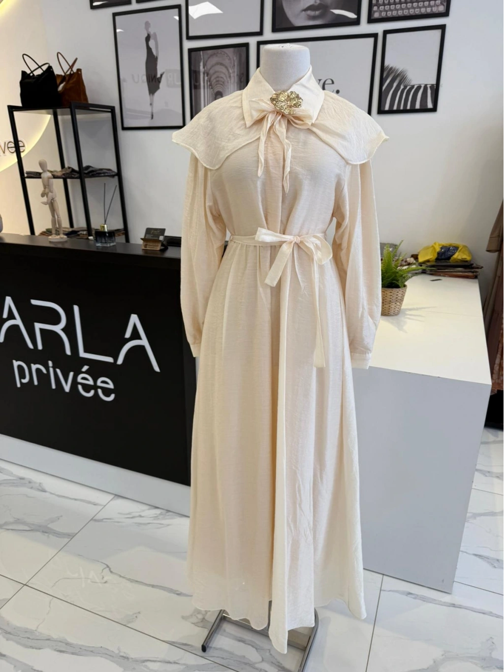 PARLA ŞAL DETAYLI EKRU GÖMLEK