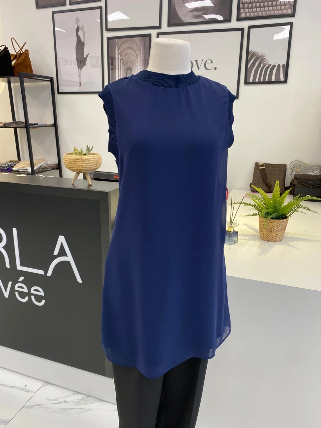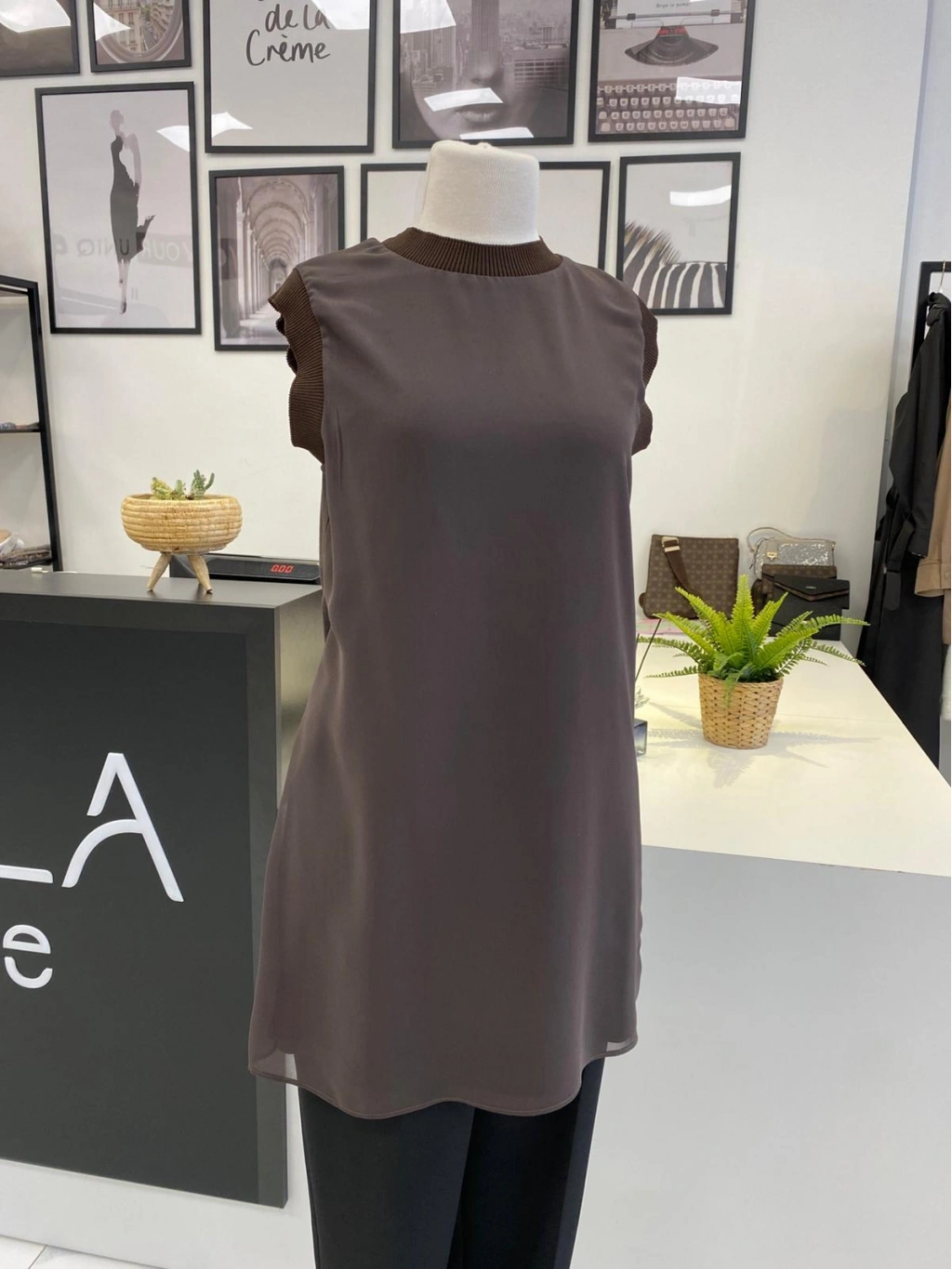 QMASH PRİVE KISA KOL ŞİFON DETAYLI TUNİK