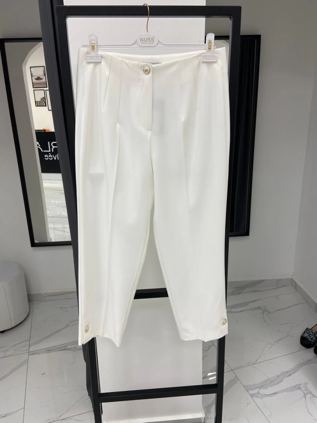 SENTEZ DÜĞMELİ PANTOLON BEYAZ